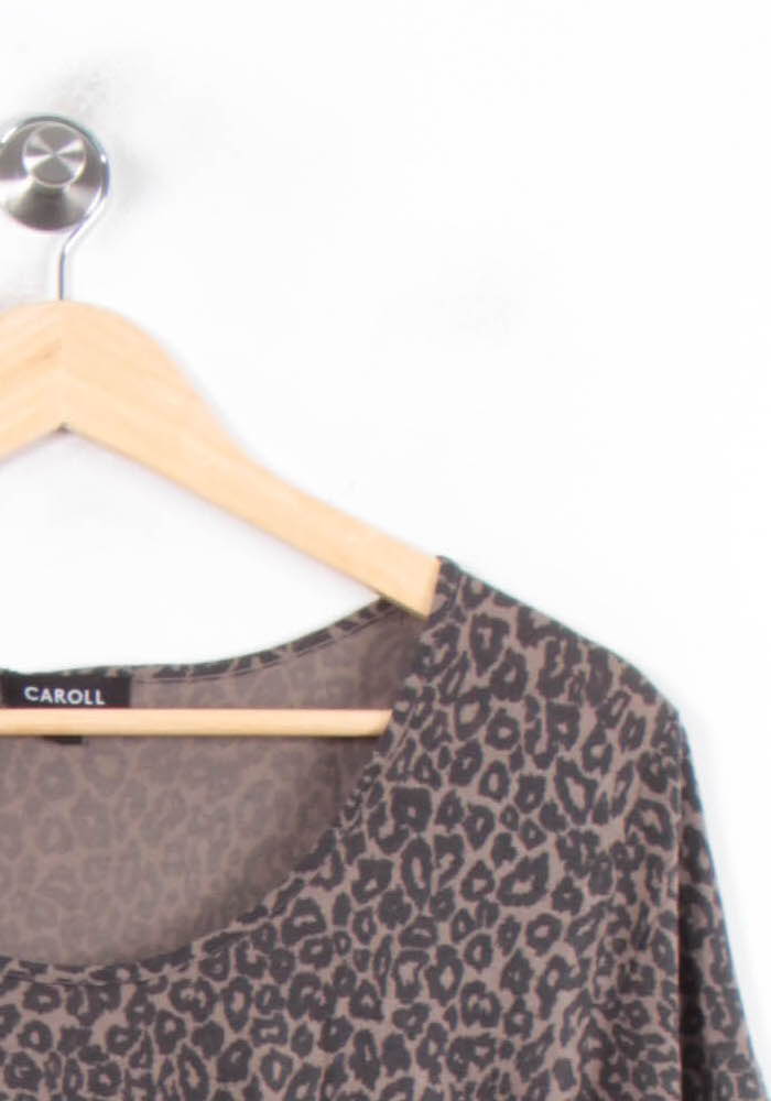 Top imprimé léopard marron Caroll, taille XXL/44, élégant et tendance, parfait pour une allure décontractée et sophistiquée. Confectionné dans une matière fluide au toucher doux, ce top se distingue par son motif léopard raffiné qui lui confère un style unique et moderne. Ce haut est idéal pour une journée de travail ou pour un déjeuner entre amis, associé à un jean ou une jupe sobre.