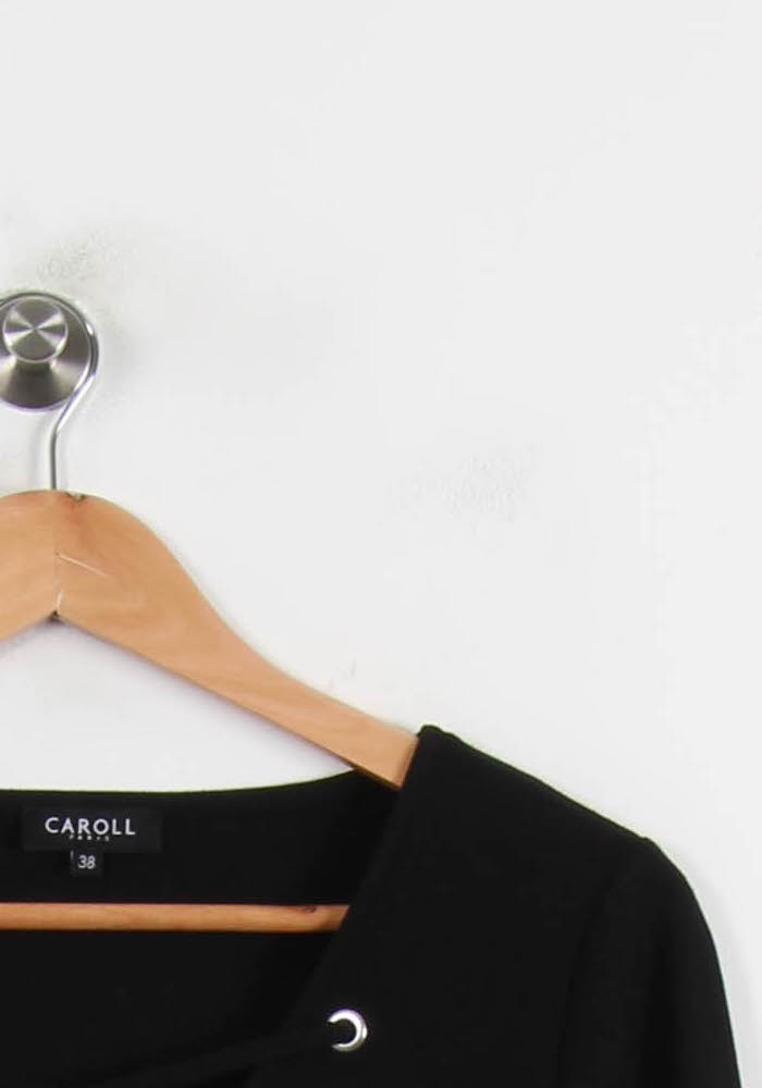 Top noir à manches 3/4 Caroll, taille M/38 – un basique élégant alliant simplicité et raffinement. Confectionné dans une matière fluide et douce, ce modèle se distingue par un laçage délicat agrémenté d’œillets métalliques au niveau de l’encolure, apportant une touche moderne et distinctive. Idéal pour une journée de travail ou un dîner entre amis, ce top s’adapte à toutes les occasions.