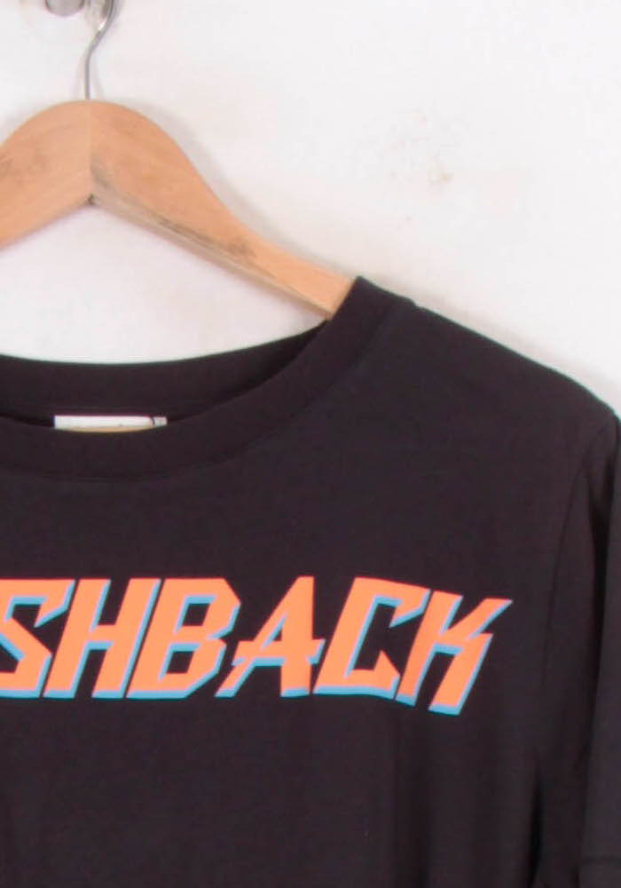 T-shirt "FLASHBACK" noir Sandro, taille M/38, au design graphique et contemporain. Confectionné dans une matière douce et fluide, ce t-shirt arbore un lettrage contrastant distinctif imprimé sur la poitrine, apportant une touche originale et moderne à cette pièce classique. Parfait pour une sortie décontractée entre amis ou un look urbain tendance au quotidien.