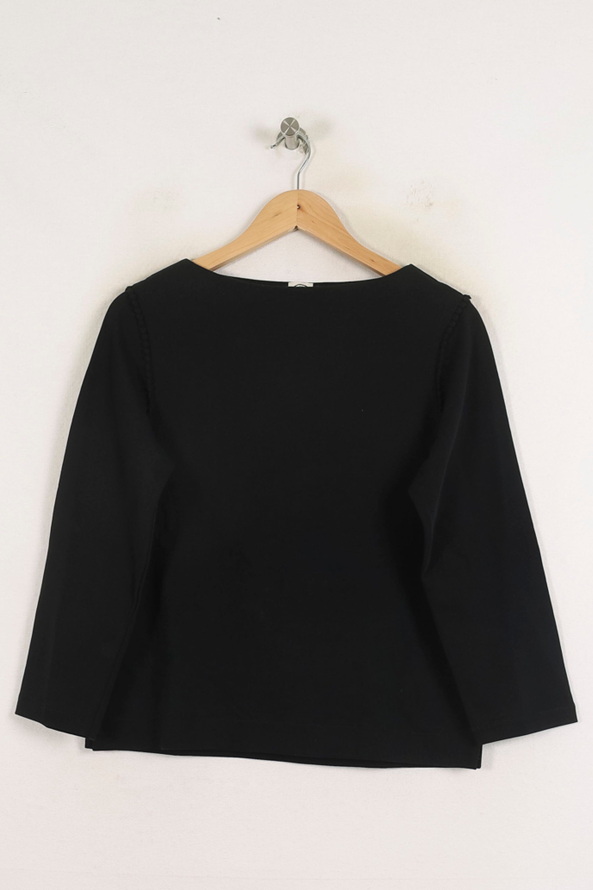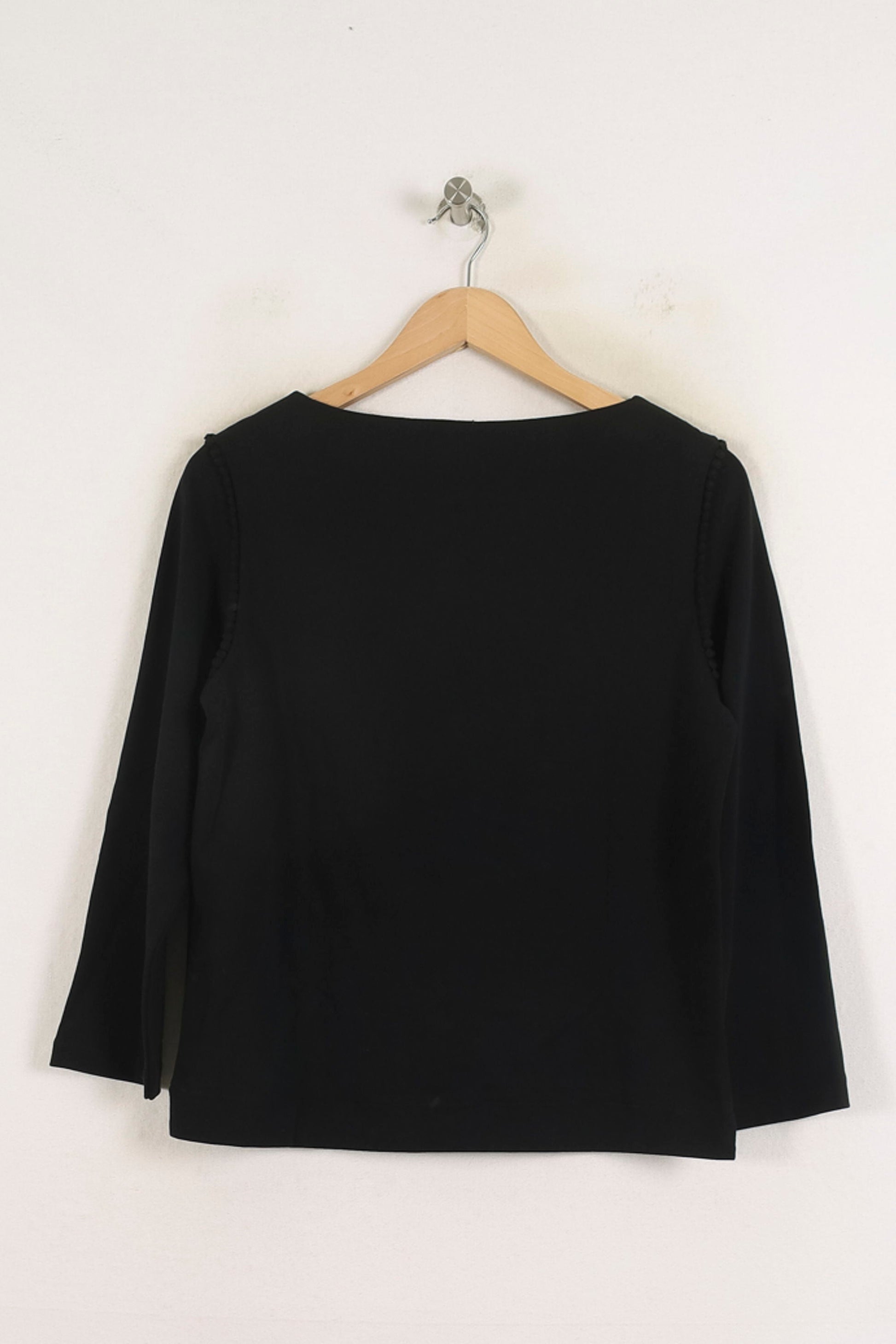 Top noir à manches longues Ines de la Fressange Paris, taille S/36, au design épuré et intemporel, parfait pour un dressing élégant. Confectionné dans une matière visiblement douce, ce haut se distingue par ses finitions soignées sur les manches et les épaules, reflétant la qualité et le raffinement caractéristiques de la marque. Idéal pour une journée de travail ou un dîner en ville, il accompagnera toutes vos tenues avec chic.