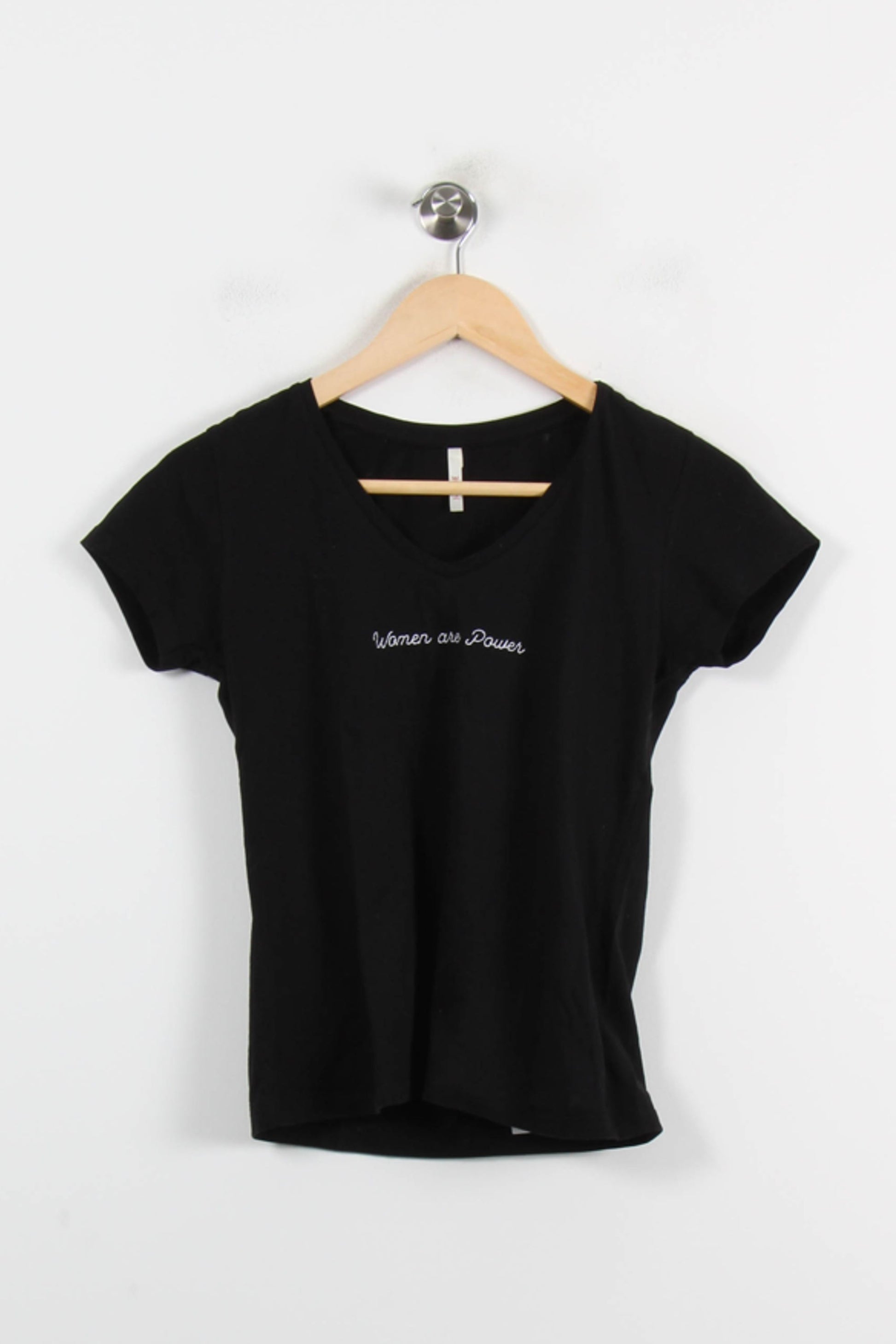 T-shirt noir Women are Power I.Code, taille XS/34, marque I.Code. Confectionné dans une matière souple et agréable, ce top à col en V se distingue par son inscription brodée “Women are Power” sur le devant, qui lui confère une touche moderne et engagée. À porter lors d’une sortie décontractée entre amies ou pour une journée de travail dynamique.