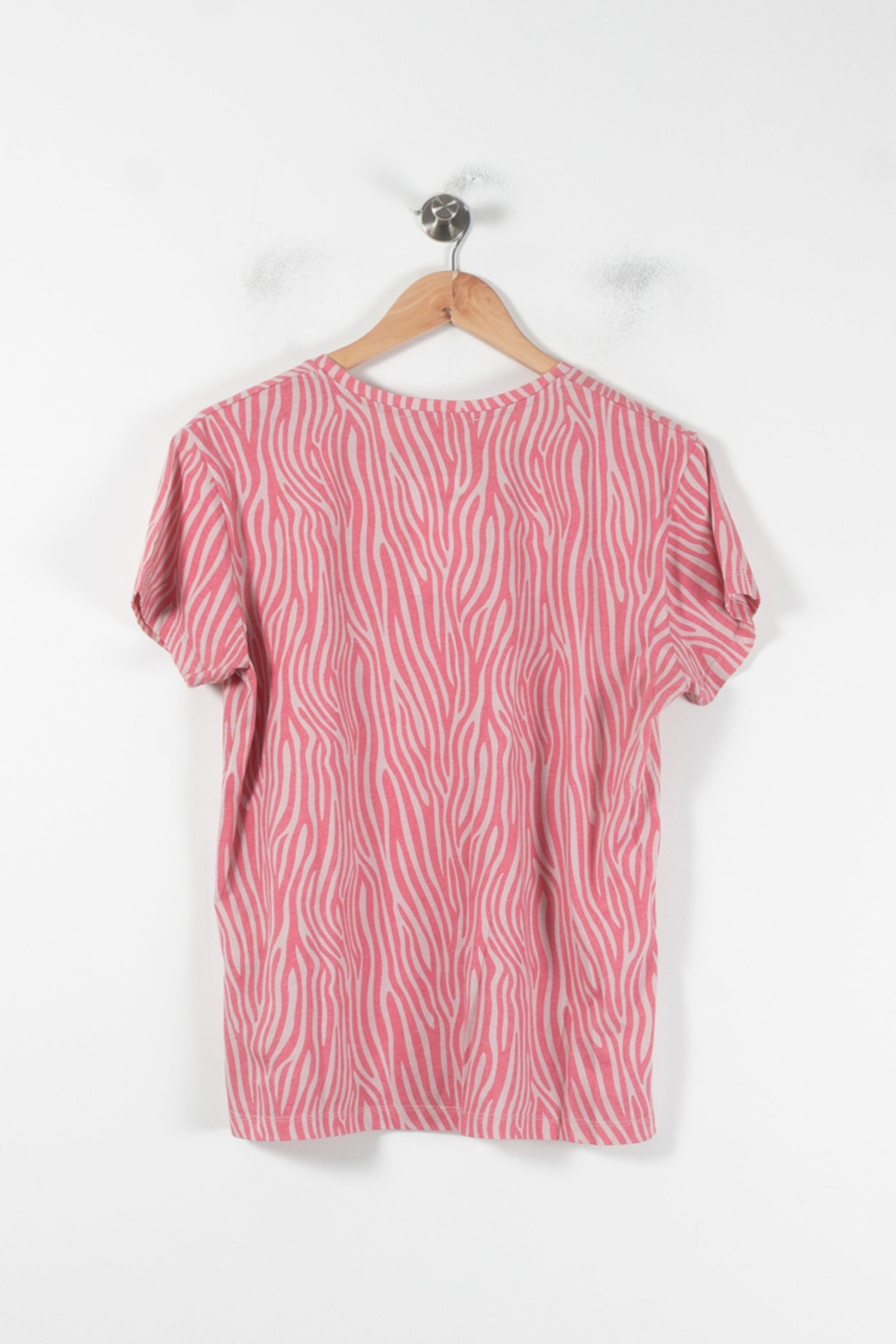 T-shirt imprimé zébré rose « IMPREVU » en taille XL/42, signé Imprevu. Alliance de polyester (65%) et coton (35%), ce haut se distingue par son motif animalier dynamique et son logo brodé sur la poitrine, offrant une touche originale et affirmée à votre dressing. Parfait pour dynamiser une tenue casual lors d’un week-end entre amis.