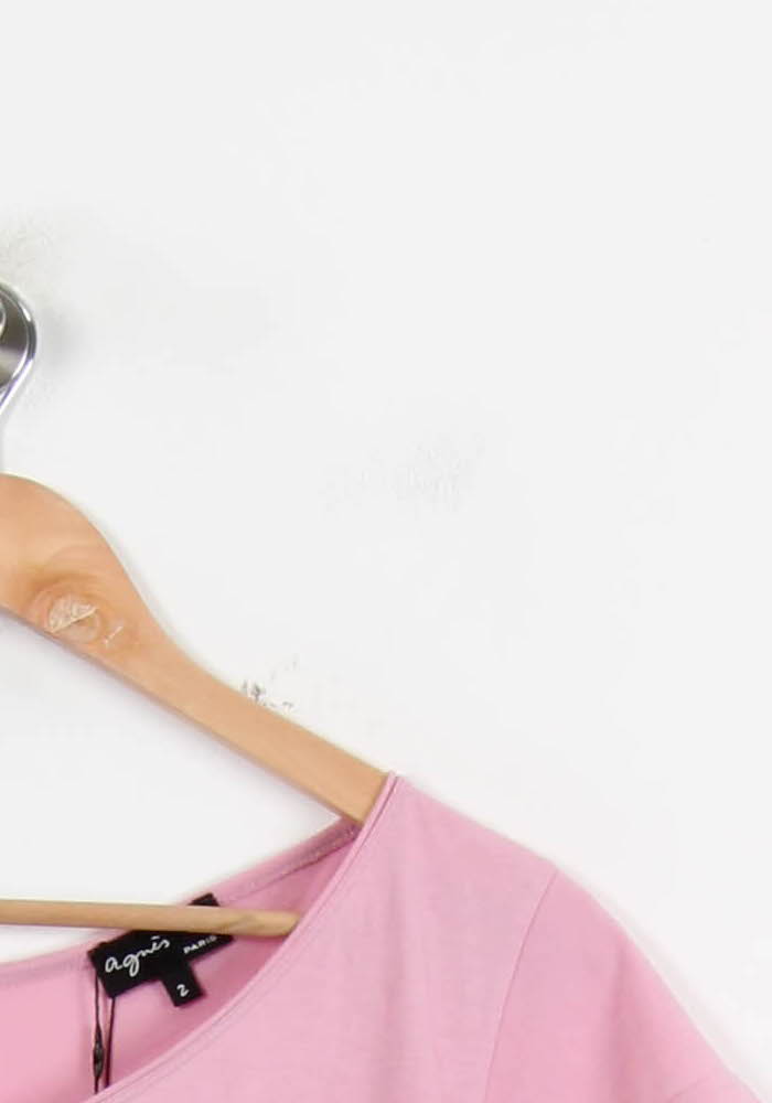 Top rose Agnès b., taille M/38 : un basique raffiné idéal pour compléter votre garde-robe. Confectionné dans une matière légère et douce, ce top séduit par sa coupe simple à manches courtes et son col légèrement évasé, lui conférant une allure élégante et décontractée. Parfait pour une journée décontractée en ville ou un brunch estival entre amis.