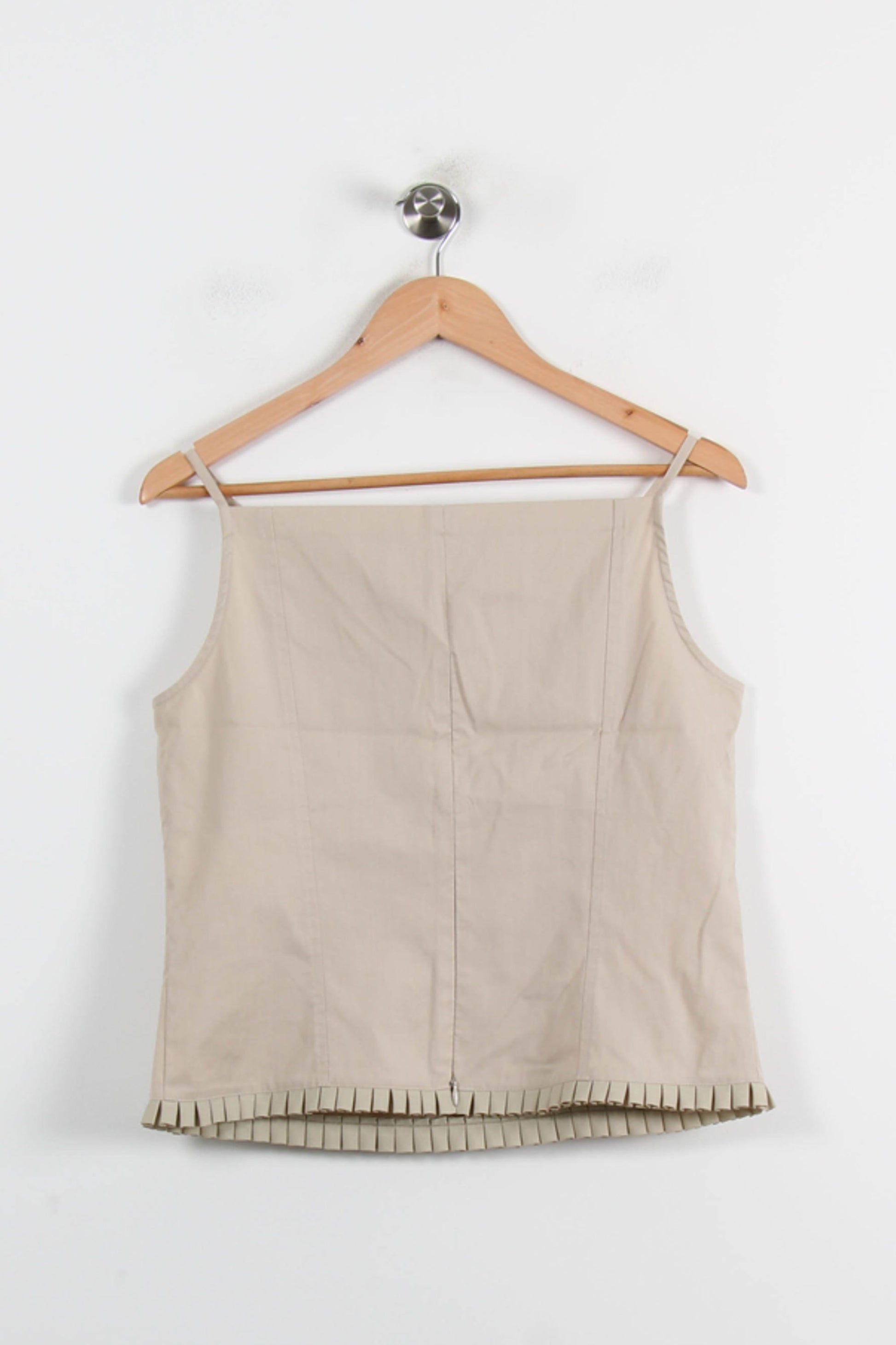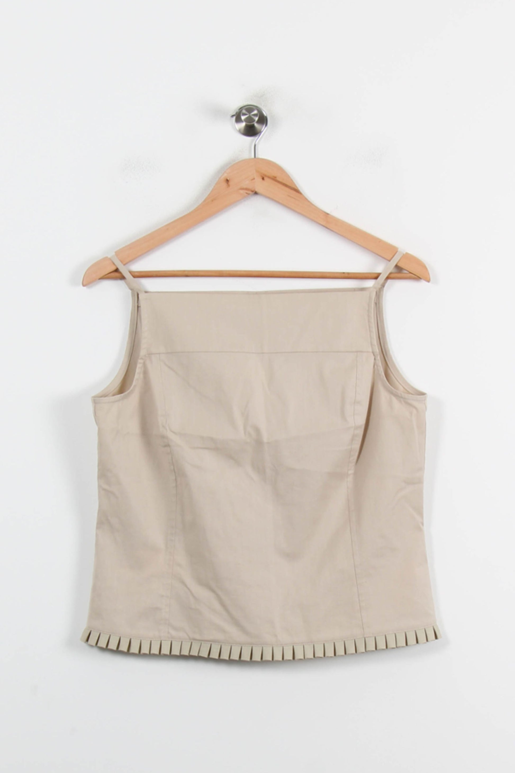 Top beige à fines bretelles ZAPA, taille XL/42, élégant et épuré, parfait pour compléter une garde-robe raffinée. Confectionné dans une matière lisse et structurée, ce top se distingue par sa finition plissée discrète au bas, apportant une touche d’originalité et de sophistication à un modèle intemporel. Idéal pour une journée estivale ou pour une sortie décontractée, il se porte facilement avec un pantalon fluide ou une jupe élégante.