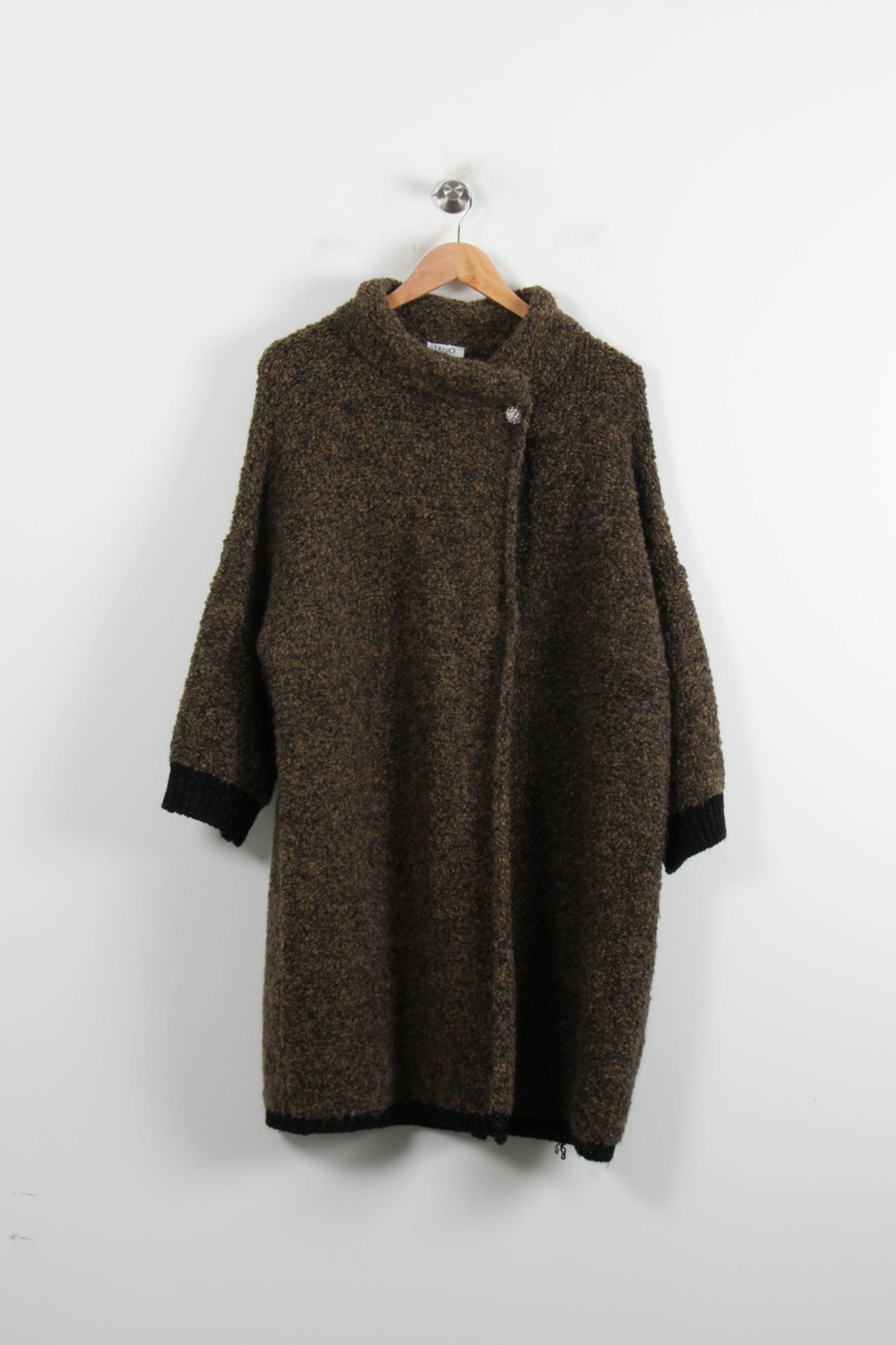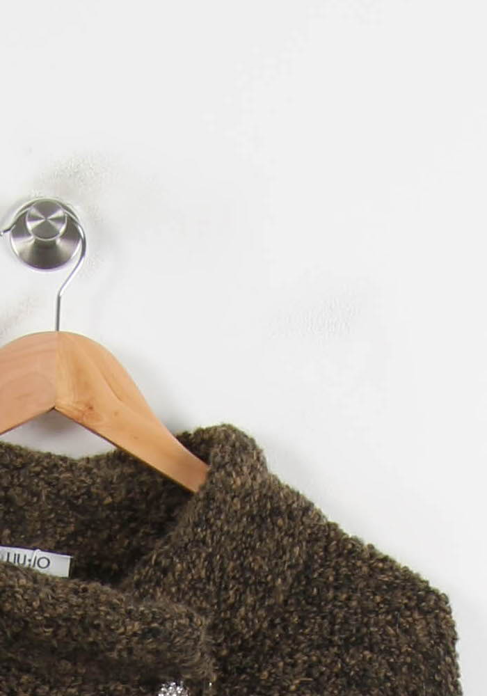 Veste ample verte Liu Jo, taille L/40, dotée d’une élégante fermeture croisée avec bouton, idéale pour apporter une touche contemporaine à votre vestiaire. La matière à l’aspect bouclette confère au vêtement une texture unique, tandis que les finitions côtelées contrastées aux poignets et à la base soulignent son originalité et son raffinement. Parfaite pour une promenade automnale en ville ou pour sublimer une tenue décontractée chic lors d’un brunch entre amis.