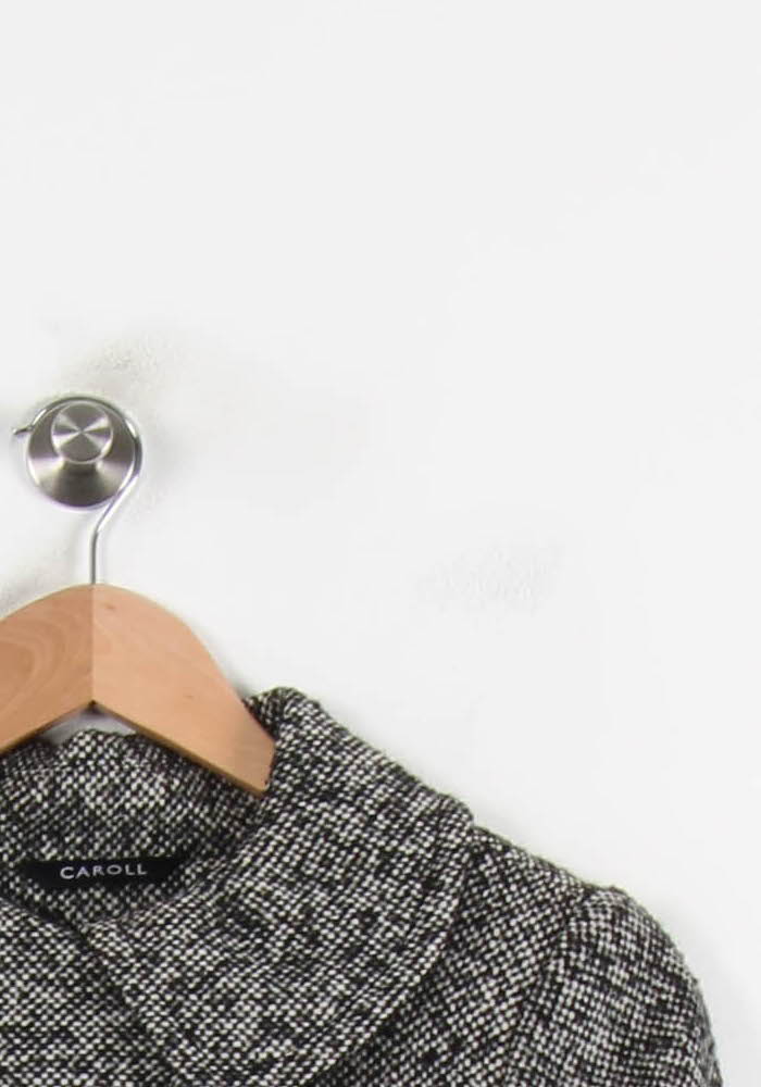 Veste Caroll gris chiné en taille M/38, au style élégant et intemporel, idéale pour un look raffiné en toutes circonstances. Confectionnée dans une matière texturée, cette veste se distingue par son col arrondi, sa coupe courte et ses finitions boutonnées aux poignets qui lui confèrent beaucoup de caractère. Parfaite pour accompagner une tenue de bureau ou pour sublimer une sortie en ville lors des journées fraîches.