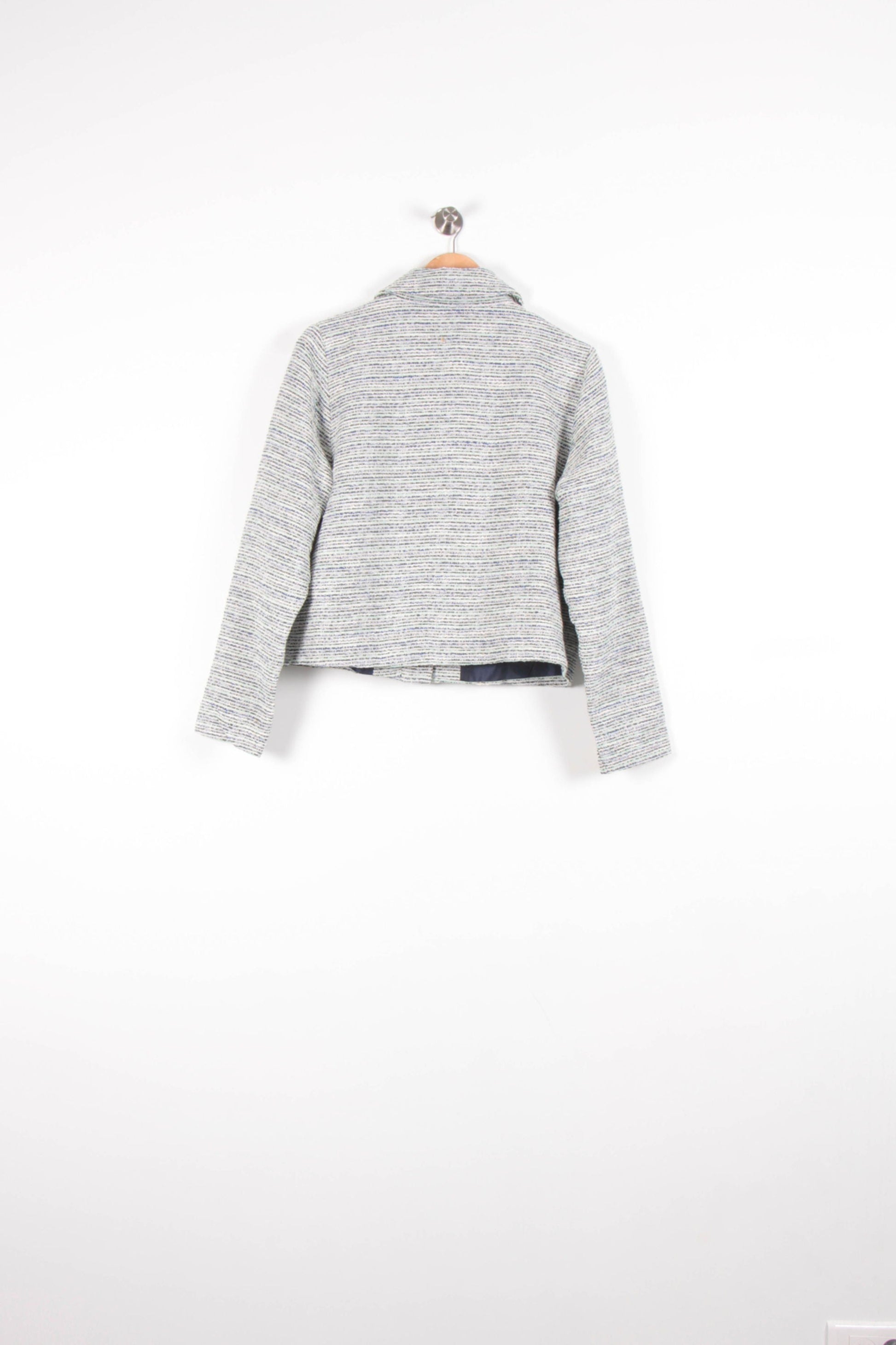 Veste La Fée Maraboutée beige, taille XL/42, caractérisée par une coupe droite et une allure contemporaine. Confectionnée dans une matière tissée effet chiné, cette pièce se distingue par ses boutons apparents et ses deux poches plaquées sur la poitrine, offrant un look élégant et moderne. Idéale pour compléter une tenue de bureau ou pour apporter une touche sophistiquée à un ensemble décontracté lors d’un déjeuner en ville.
