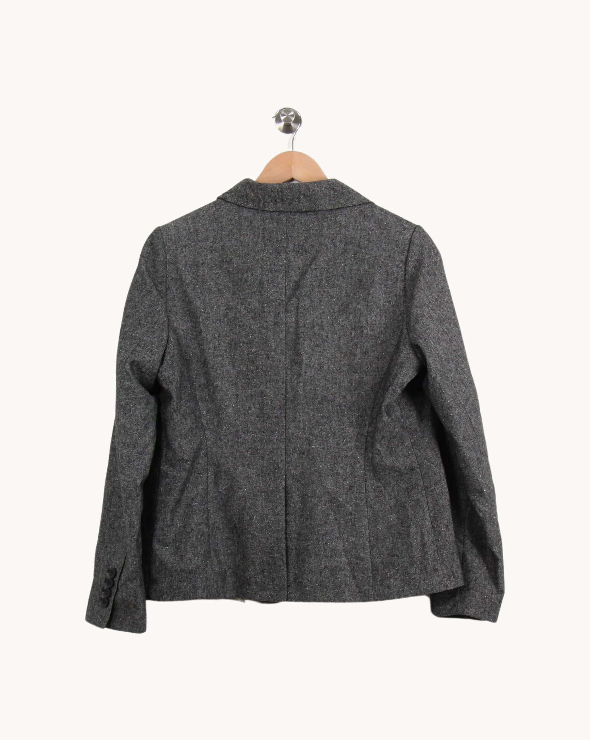 Veste gris anthracite Ines de la Fressange Paris, taille XL/42, élégante et intemporelle. Confectionnée dans une matière texturée au toucher doux, elle se distingue par sa coupe classique à un bouton, ses poches à rabat et sa doublure soignée qui lui confèrent une allure raffinée. Idéale pour une réunion professionnelle ou une sortie citadine élégante.