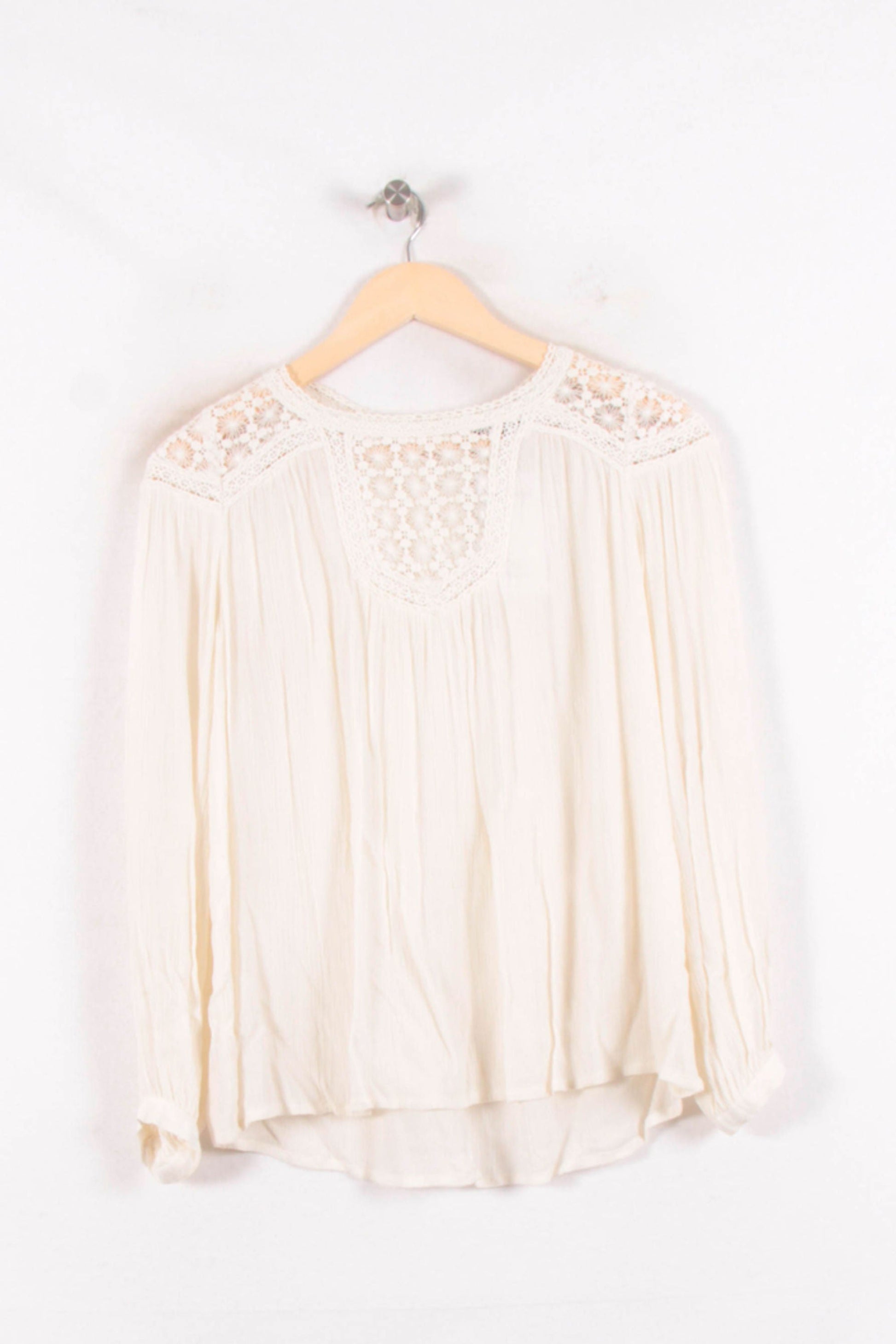 Top Caroll beige en taille S/36, délicatement travaillé avec des détails ajourés sur les épaules et le buste. Confectionné dans une matière fluide, ce haut se distingue par ses empiècements en dentelle qui apportent une touche élégante et raffinée à l’ensemble. Parfait pour une journée au bureau ou un déjeuner en terrasse, il offre un style aussi confortable que sophistiqué.