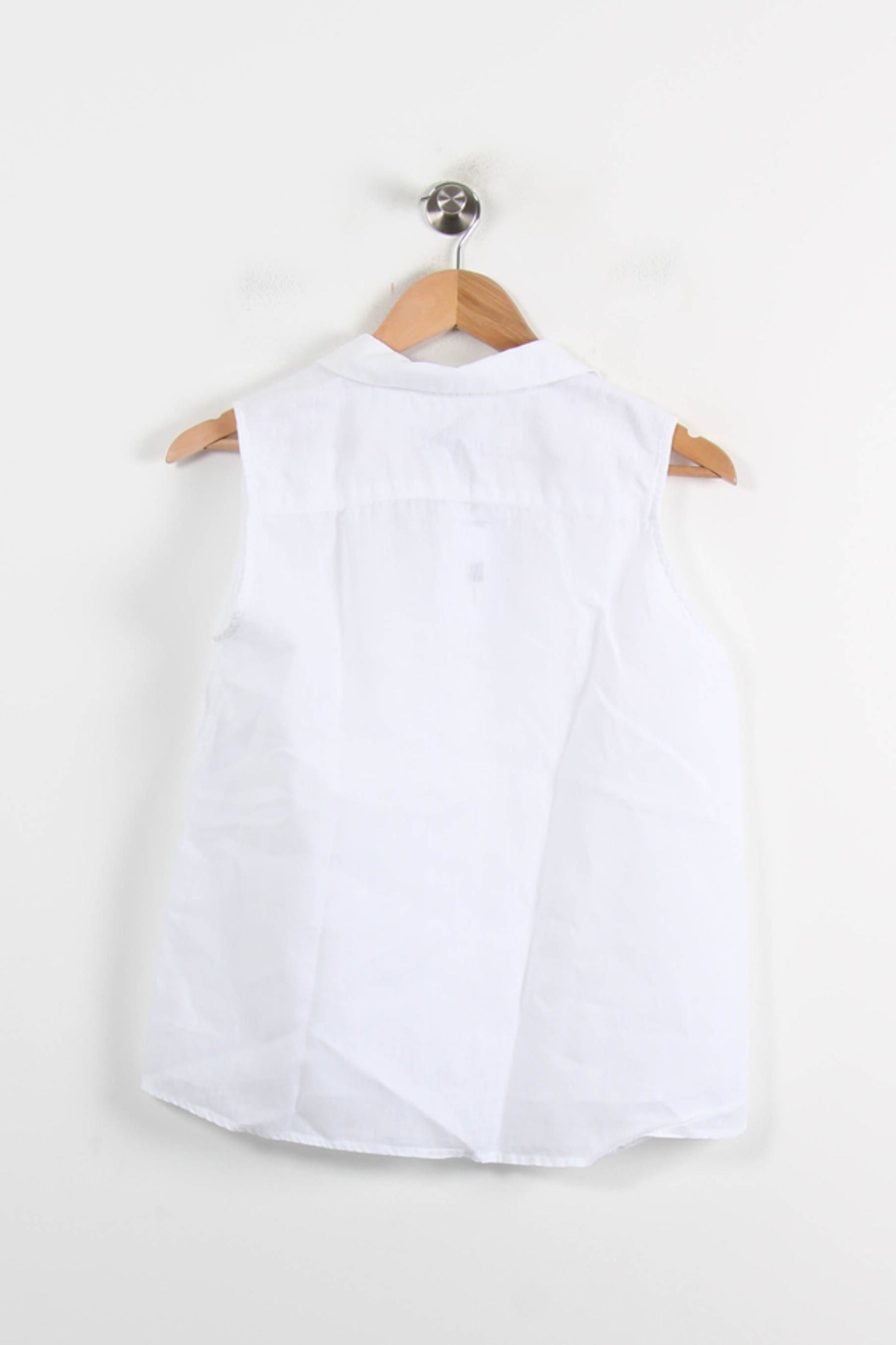 Top sans manches blanc Caroll, taille M/38, au design épuré et élégant. Confectionné dans une matière légère, ce modèle propose un col chemise classique et une encolure en V soignée, apportant une touche d’élégance minimale à la silhouette. Idéal pour une journée professionnelle estivale ou un déjeuner en terrasse.
