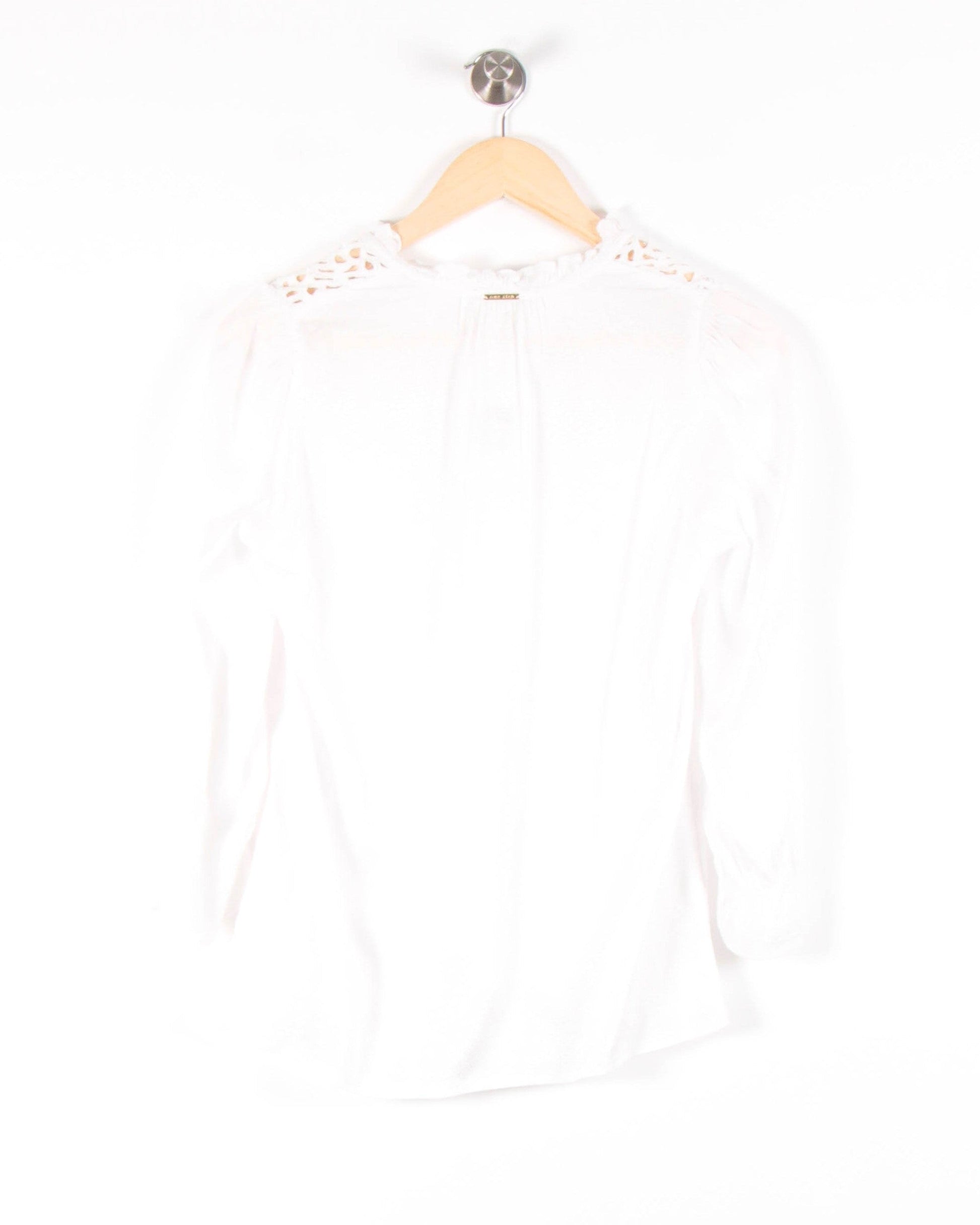Haut blanc One Step, taille S/36, à manches trois-quarts et col en V, idéal pour une allure élégante et décontractée. Sa matière légère et fluide apporte un confort optimal, tandis que le détail ajouré sur une épaule confère à la pièce une touche d’originalité et de modernité. Ce top raffiné se porte parfaitement lors d’un déjeuner en ville ou d’une sortie entre amis.
