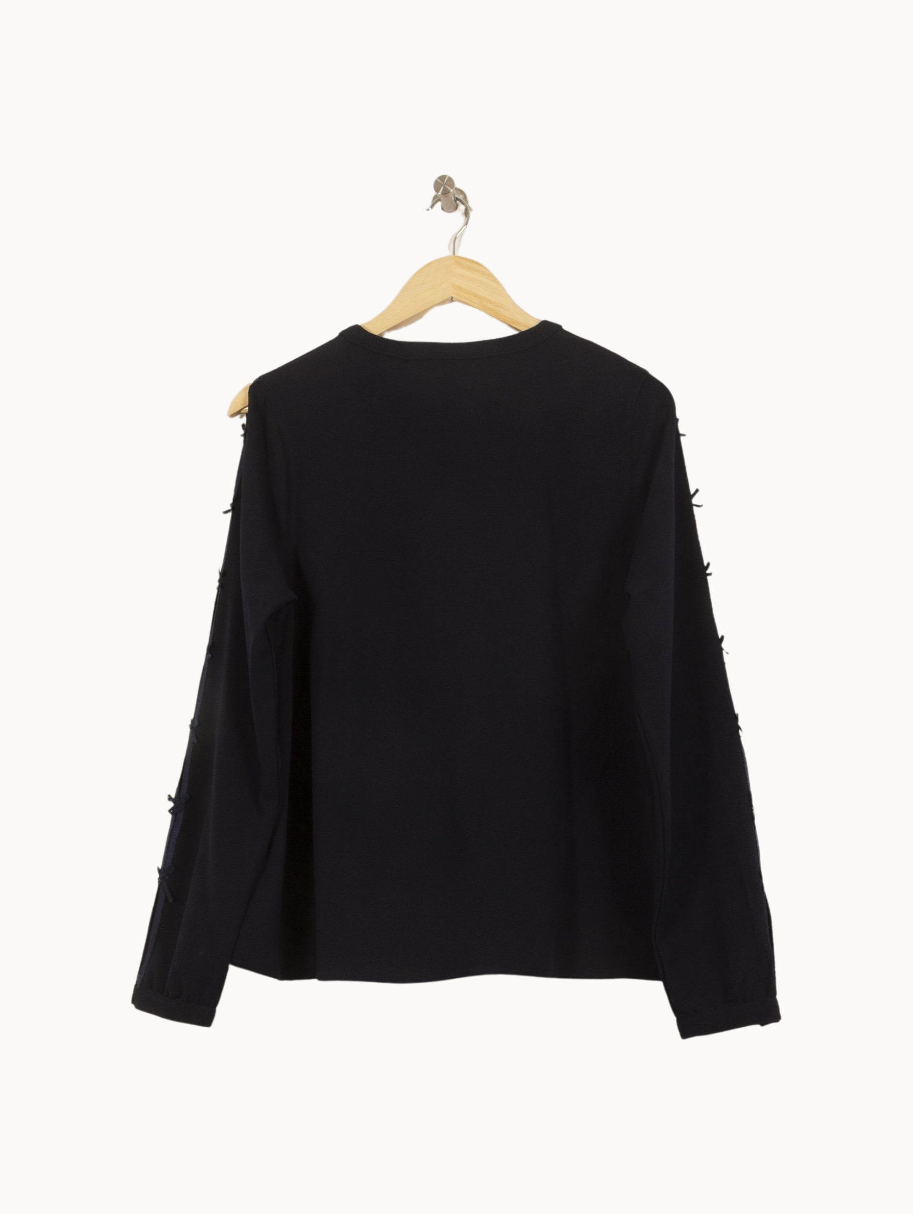 Top bleu Karl Marc John, taille S/36, à manches longues et col rond, proposé par la marque Karl Marc John. Sa matière fluide et légère offre un tombé élégant, tandis que les détails de nœuds discrets sur les manches ajoutent une touche raffinée et originale à ce modèle intemporel. Idéal pour une journée au bureau ou un dîner entre amis, ce top s’adapte parfaitement à toutes les occasions où l’on souhaite allier confort et style.