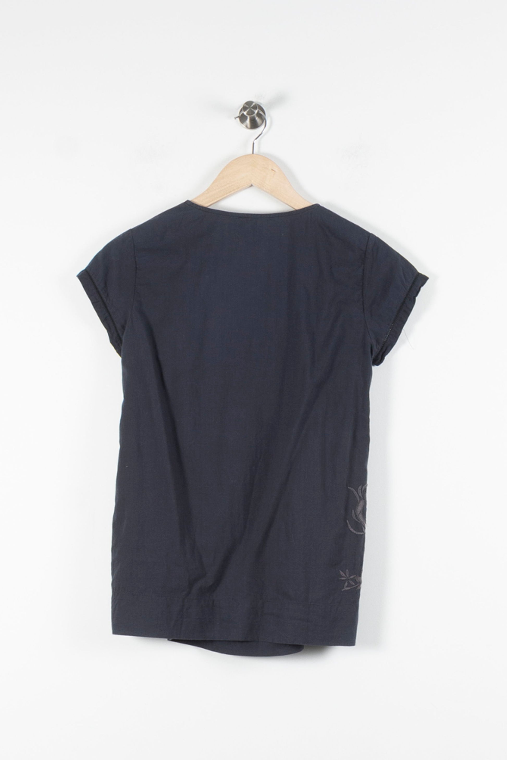 Top bleu Stella Forest et taille S/36, à manches courtes et encolure carrée, orné d'une broderie florale délicate sur le côté. Confectionné en 100% coton avec broderie, etc., ce top bénéficie d'une finition soignée, offrant un tombé souple et une broderie détaillée au caractère unique. Idéal pour un rendez-vous professionnel et une journée agréable et élégante, avec un jean ou une jupe fluide.