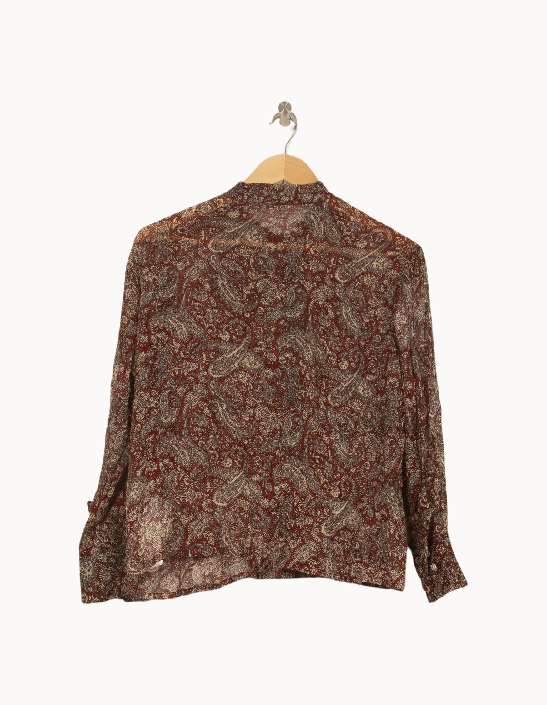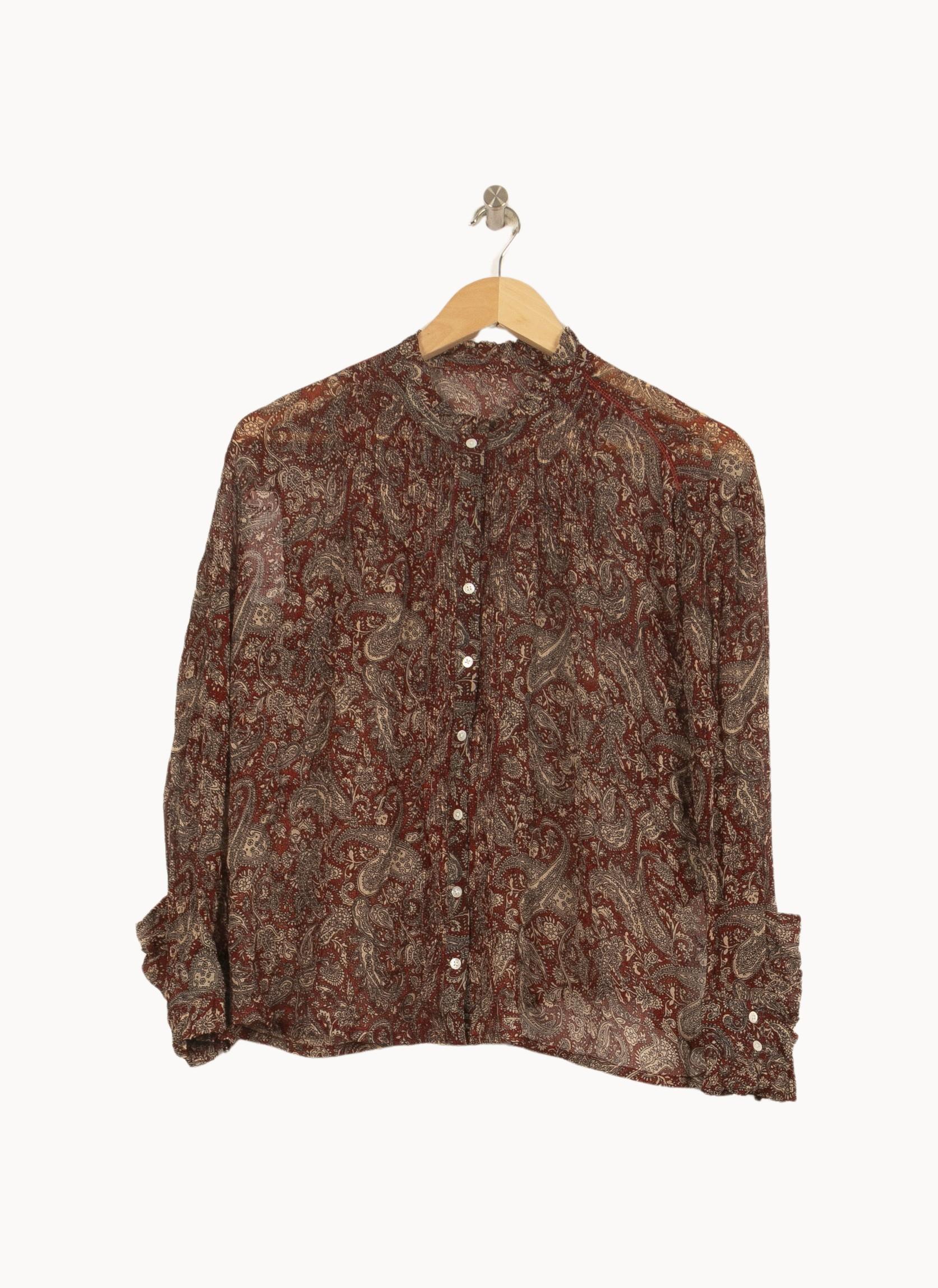 Blouse fluide bordeaux à motif cachemire, taille S/36, marque Bérénice. Les confiseries sont confectionnées dans une matière transparente et limpide, avec un design distinctif basé sur ses motifs, des techniques sophistiquées et une série de leurres, offrant un raffinement discret. Que ce soit pour une journée au bureau ou une soirée élégante, ajoutez une touche chic à votre tenue.