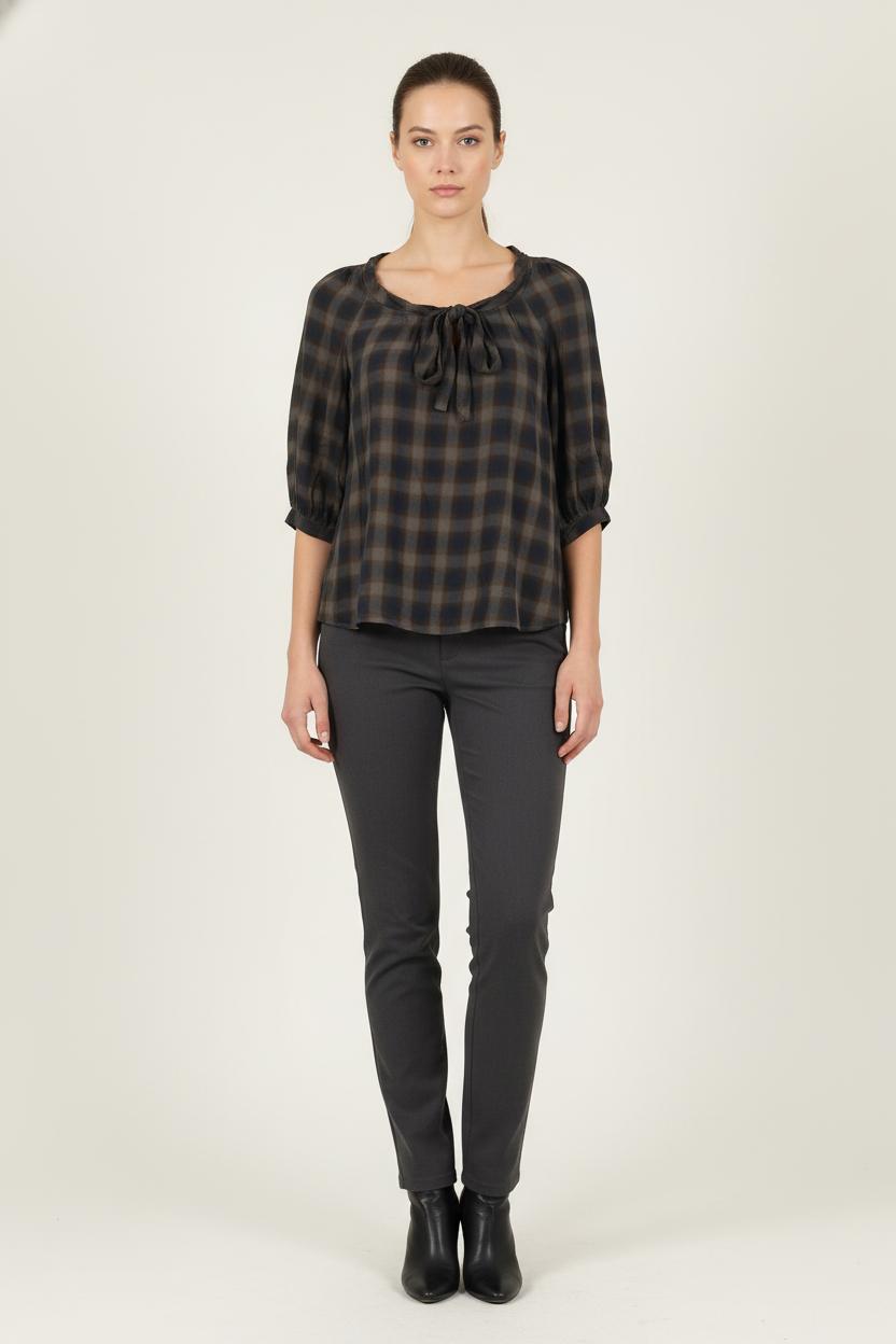 Blouse Carreaux Marron et Bleu - Taille M/38