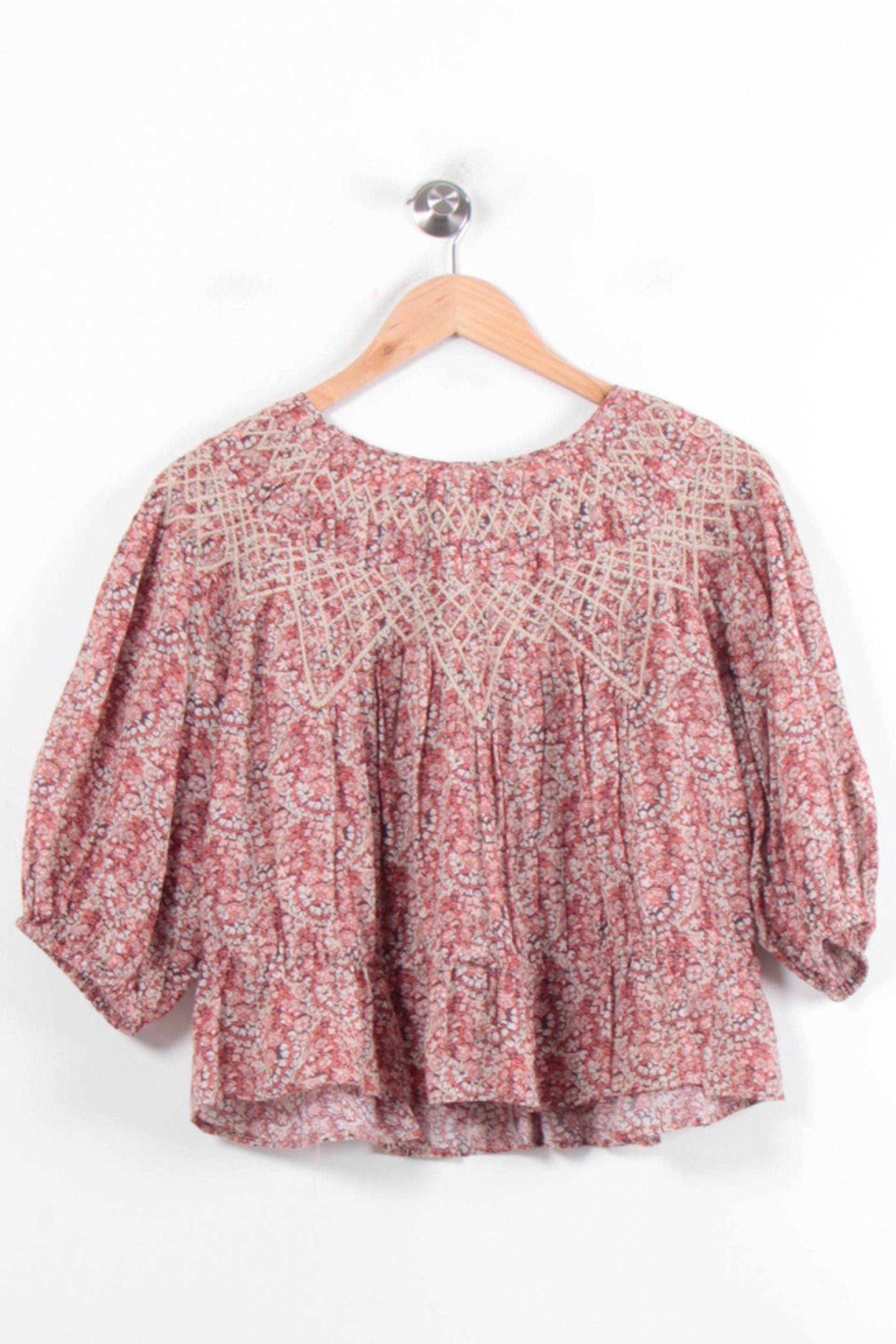 Blouse Fleurie Bordeaux et Beige - Taille M/38