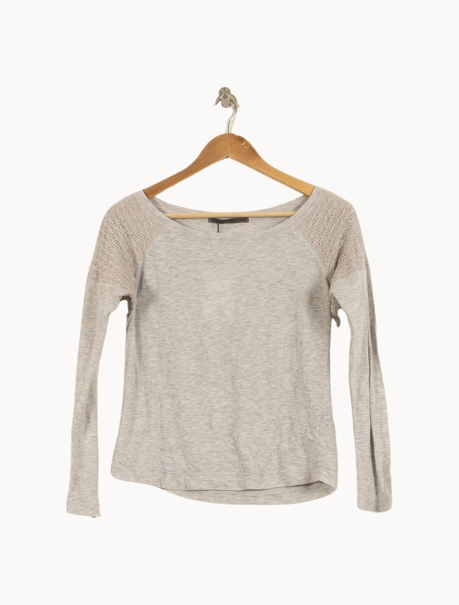 Top gris IKKS en taille M/38, confectionné dans une maille légère à manches longues avec empiècements en maille ajourée aux épaules. La matière offre un toucher doux et confortable, tandis que les détails ajourés apportent une touche d’originalité et de féminité à ce basique revisité. Idéal pour une journée décontractée au bureau ou un café entre amis, associé à un pantalon ou un jean.