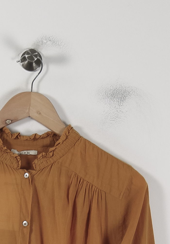 Blouse à col volanté Emile & Ida, taille M/38, couleur jaune, de la catégorie Tops. Confectionné en 100% coton, ce vêtement bénéficie de finitions soignées, réalisées avec une grande finesse, dans les moindres détails, pour une touche raffinée et féminine. Idéal pour un voyage pendant votre séjour ou une élégante virée en ville.
