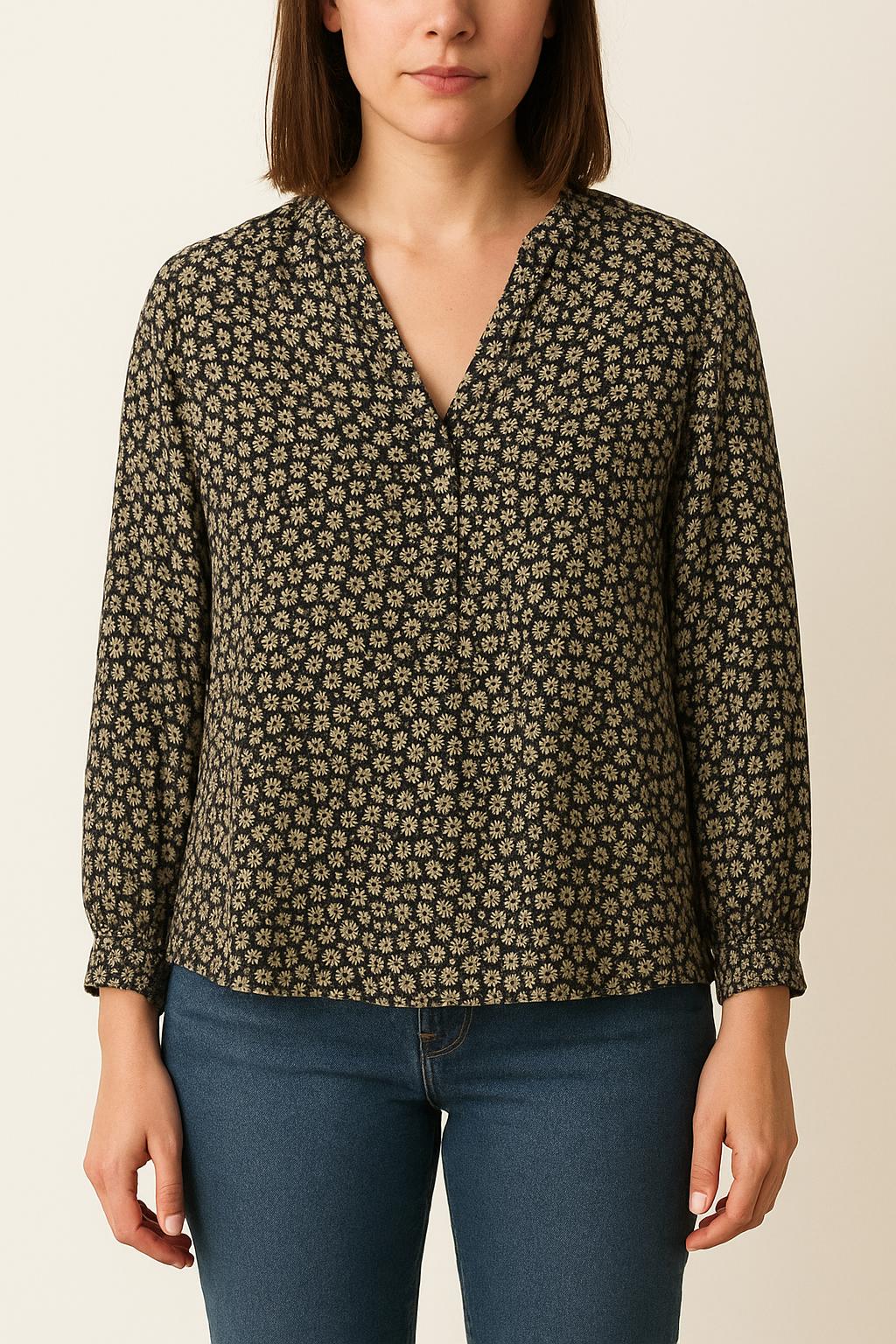 Blouse multicolore Pablo, taille L/40, avec un motif floral raffiné sur fond gris foncé, idéale pour un look sublime avec une allure élégante et féminine. La confiserie est confectionnée dans une matière fluide et légère, qui se distingue par l'impression de couleurs délicates et le long temps de travail consacré aux pièces auxiliaires, ce qui confère une touche unique à son charme. Parfaite pour une journée au bureau ou un déjeuner entre amis, une blouse ôtée comme une note élégante pour toutes sortes d'occasions.