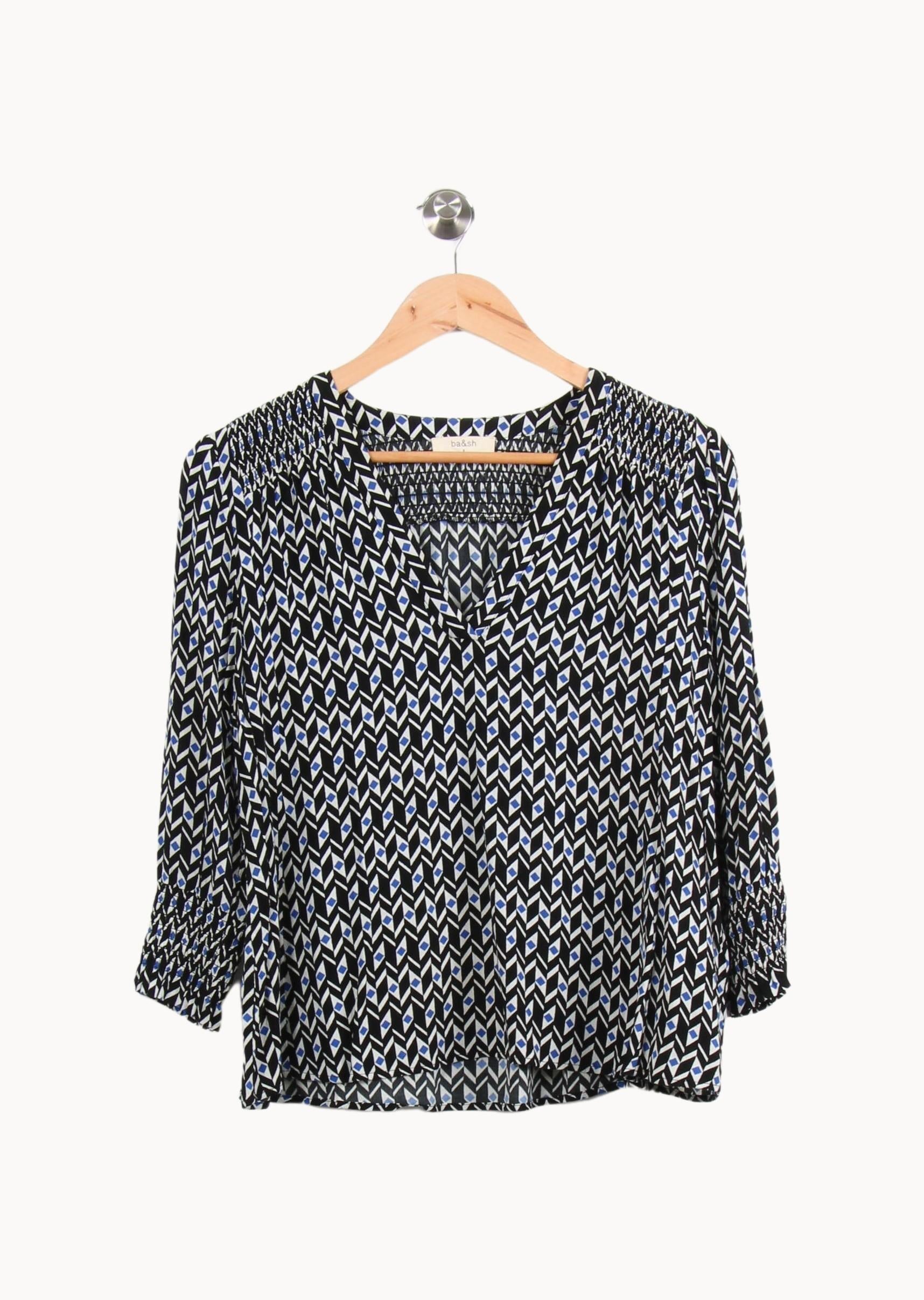 Haut à motifs multicolores avec des formes géométriques ba&sh, taille S/36, coupe fluide et col V élégant. Ceci s'explique par le confort et la douceur des matériaux utilisés, les finitions impeccables, un graphisme parfait et une allure moderne et raffinée. Idéal pour une réunion professionnelle ou un dîner raffiné.