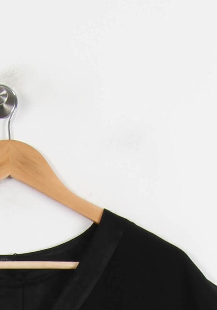 Top noir sans manches IKKS taille L/40 – un design haut de gamme dans sa forme la plus pure, idéal pour une allure chic et contemporaine. La matière fluide et la finition satinée du col V apportent une touche de sophistication, et la découpe ample assure confort et modernité. Parfait pour une réunion professionnelle et un look élégant, ce haut est conçu pour être porté avec un pantalon et une jupe crayon.