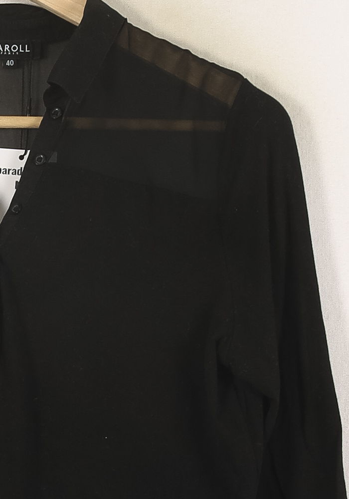 Top noir Caroll et taille L/40, un style élégant et raffiné, parfait pour sublimer votre quotidien. Le fluide utilisé dans la construction transparente du matériau lui confère une touche de raffinement et une allure moderne et élégante. Idéal pour une journée de voyage ou une soirée chic, il se marie parfaitement avec un pantalon confortable ou une tenue plus jeune.