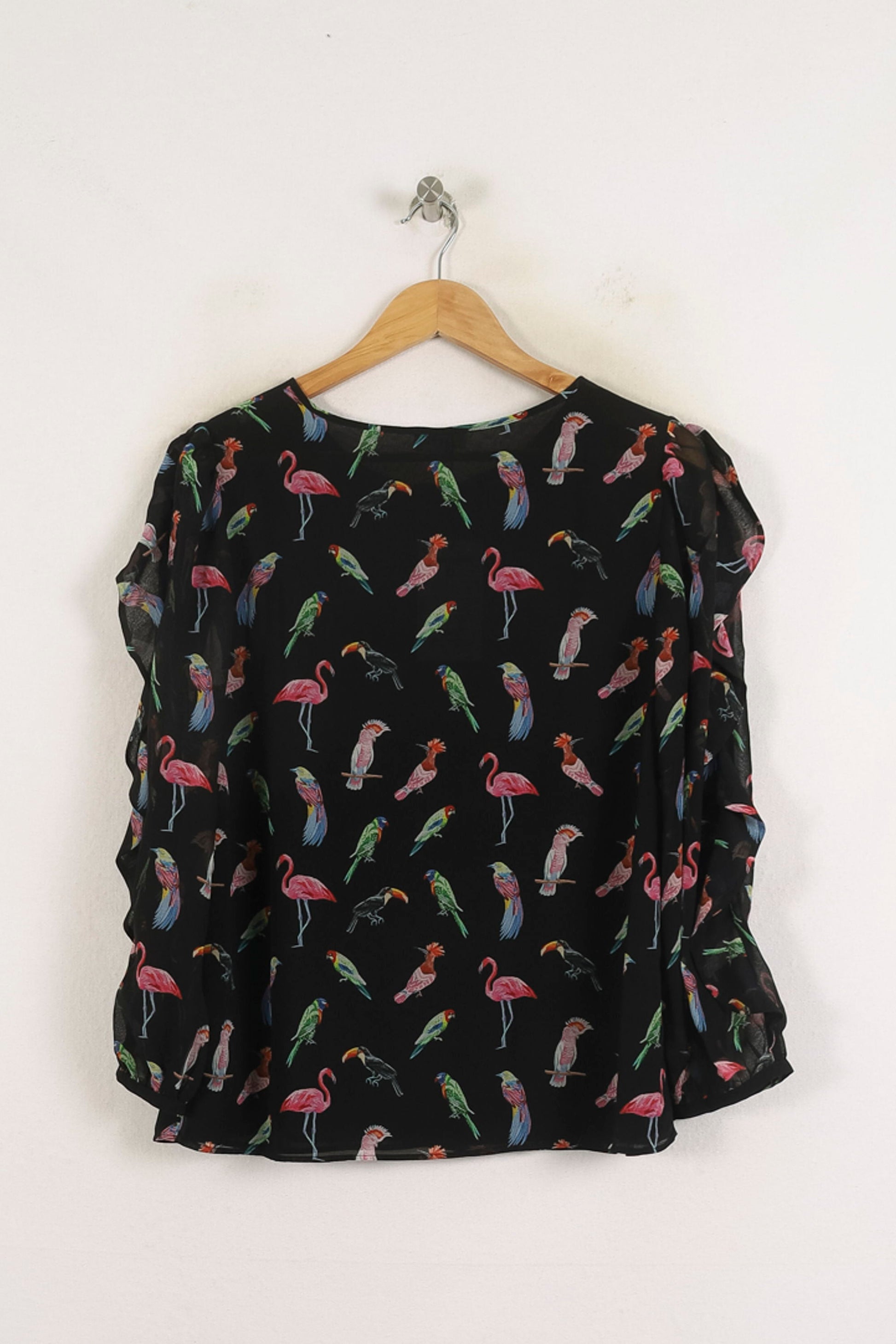 Top noir Claudie Pierlot et taille L/40, orné d'un motif d'oiseaux multicolores – un modèle audacieux et raffinement de la marque. La production d'un fluide matériel à la structure transparente, le dessus se distingue par ses vapeurs persistantes et ses imprimés vibrants qui confèrent à l'ensemble originalité et modernité. Profitez de votre soirée avec un dîner élégant, en ajoutant une touche de la fantastique maîtrise à votre look.