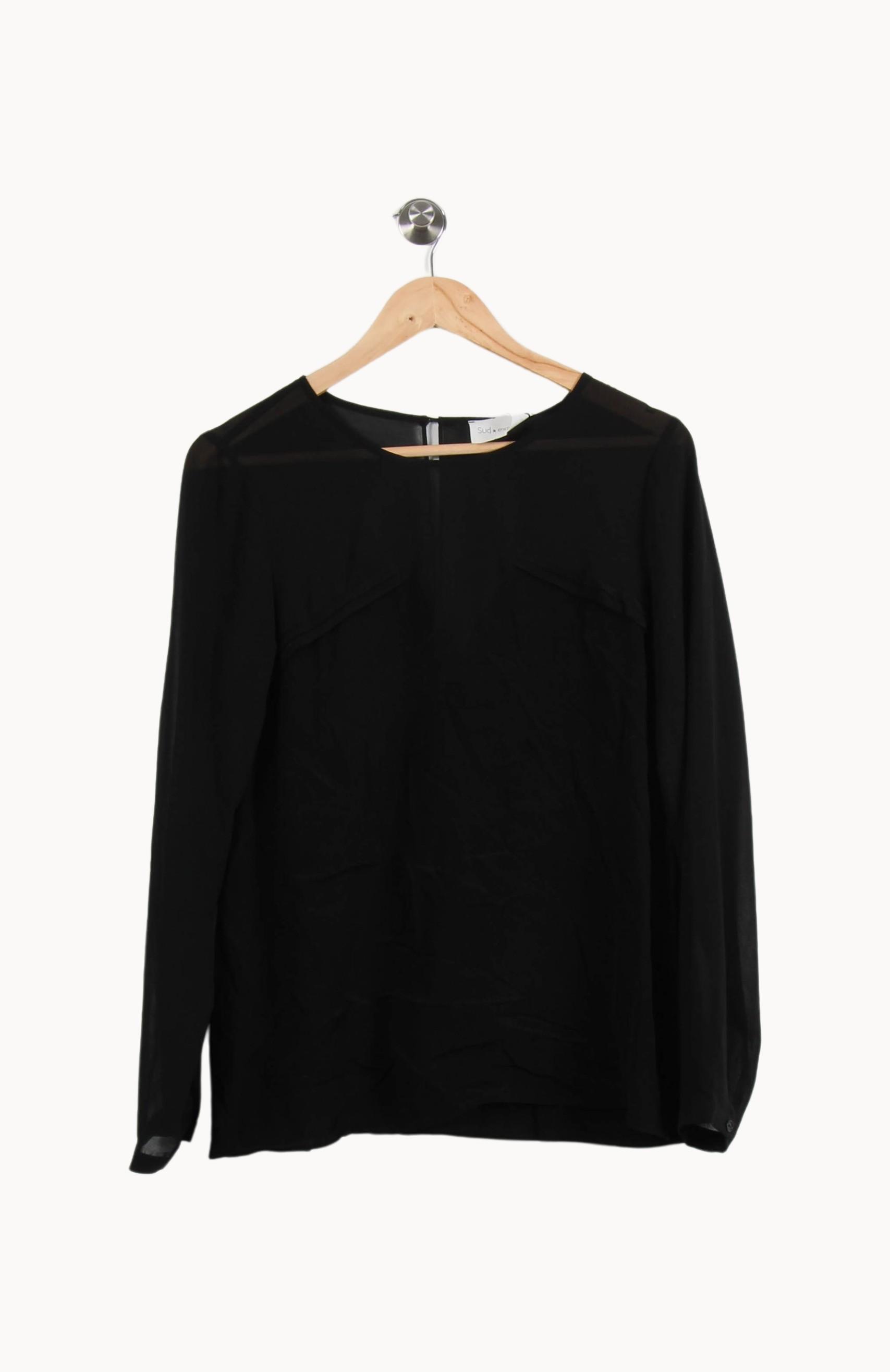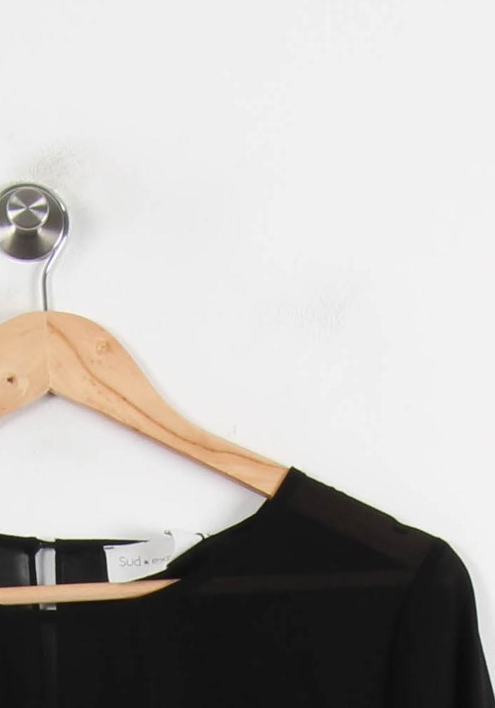 Top noir à manches longues Sud Express, taille M/38, élégant et contemporain, parfait pour une allure sophistiquée. Une confiserie en matière fluide, qui se distingue par sa finition et son chic sobre, avec une coupe qui met en valeur la silhouette. Idéal pour une journée de travail ou une soirée conviviale en famille.