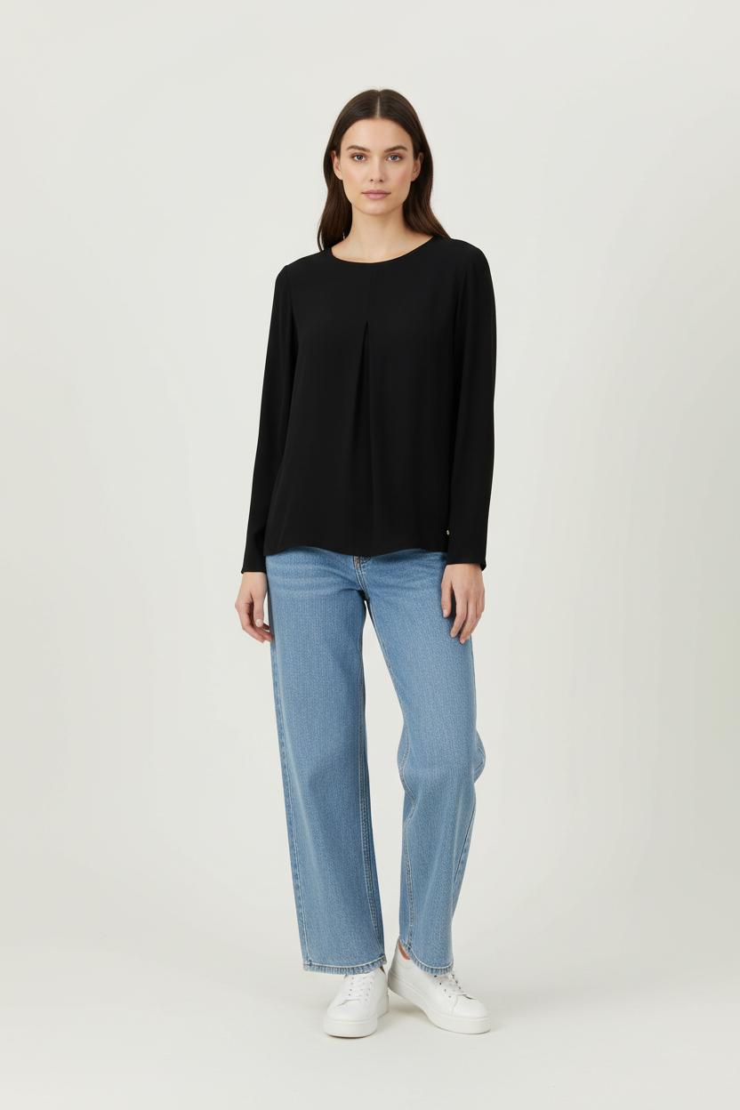 Top noir à manches longues "Des petits hauts", taille M/38, élégant et contemporain, idéal pour un dressing moderne complet. Composée à 100% de viscose, elle se distingue par sa fluidité et sa douceur, avec un raffinement précis de la couleur, subtilité signature qui la rend unique. Parfait pour une journée de voyage, avec un accompagnement de premier ordre, ainsi que pour des soirées chics en ville.