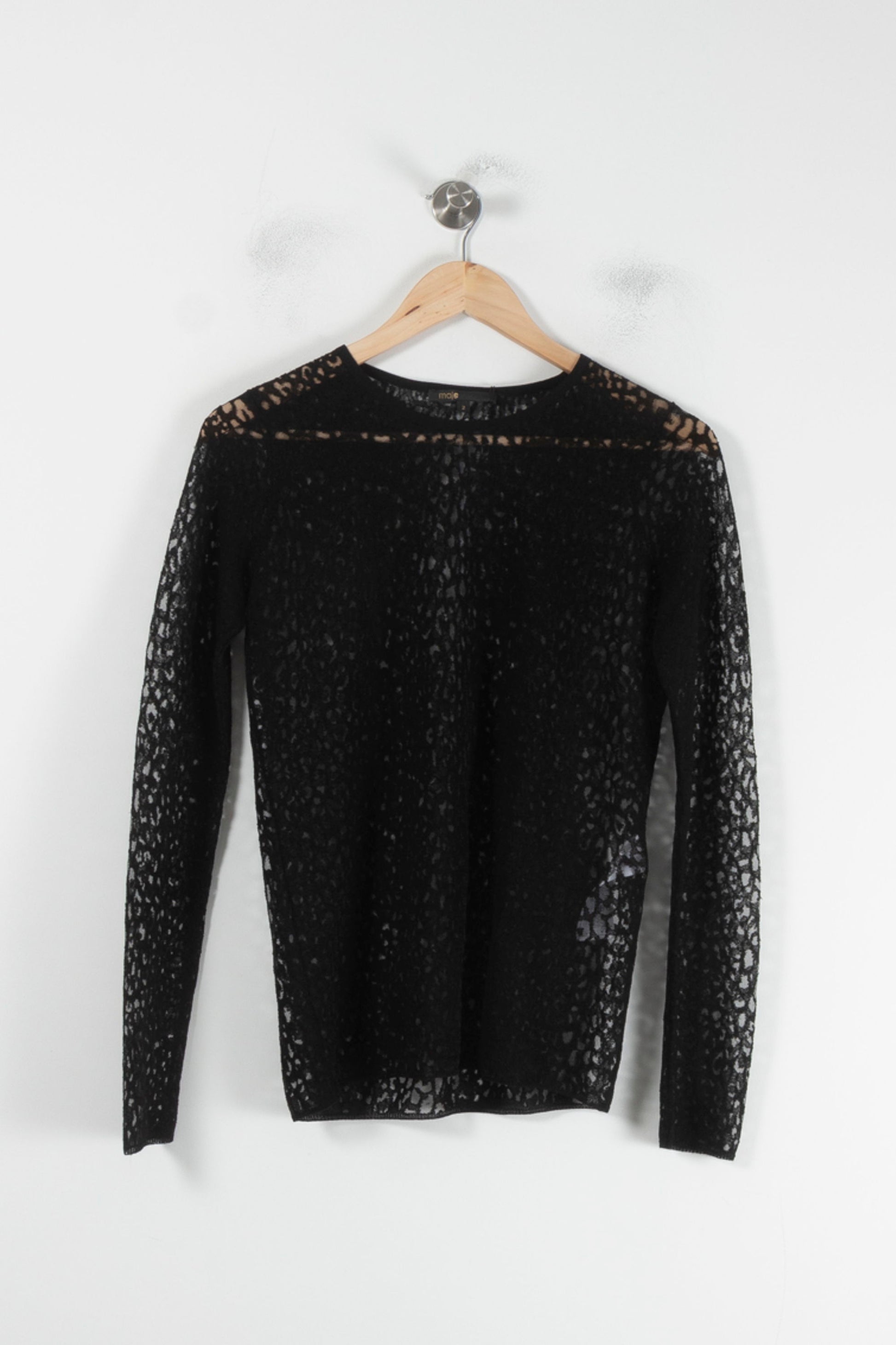Top noir ajouré Maje, taille M/38 – une mode raffinée à manches longues, idéale pour une silhouette élégante. Fabriquées à partir de viscose (73%) et de polyester (27%), la distinction entre les motifs et la subtilité unique de l'apparence ajoutent une touche de modernité et de sophistication à la garde-robe. Parfait pour une soirée chic ou un événement décontracté, avec des tenues sublimes alliant discrétion et originalité.