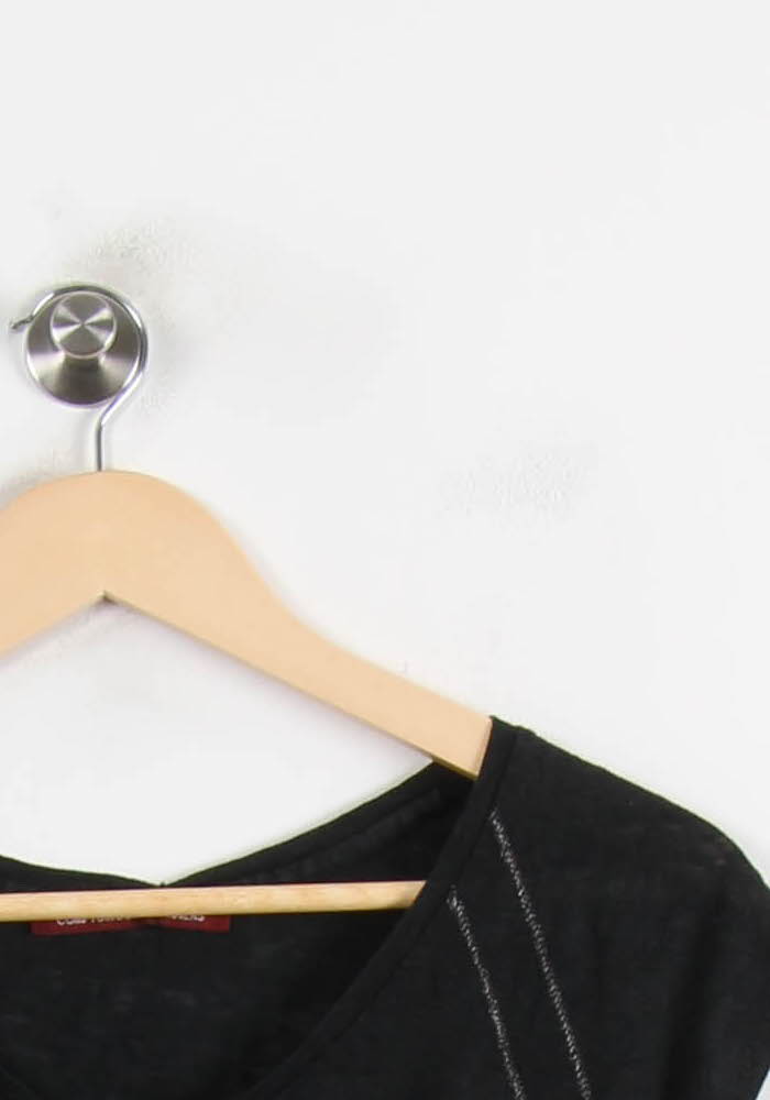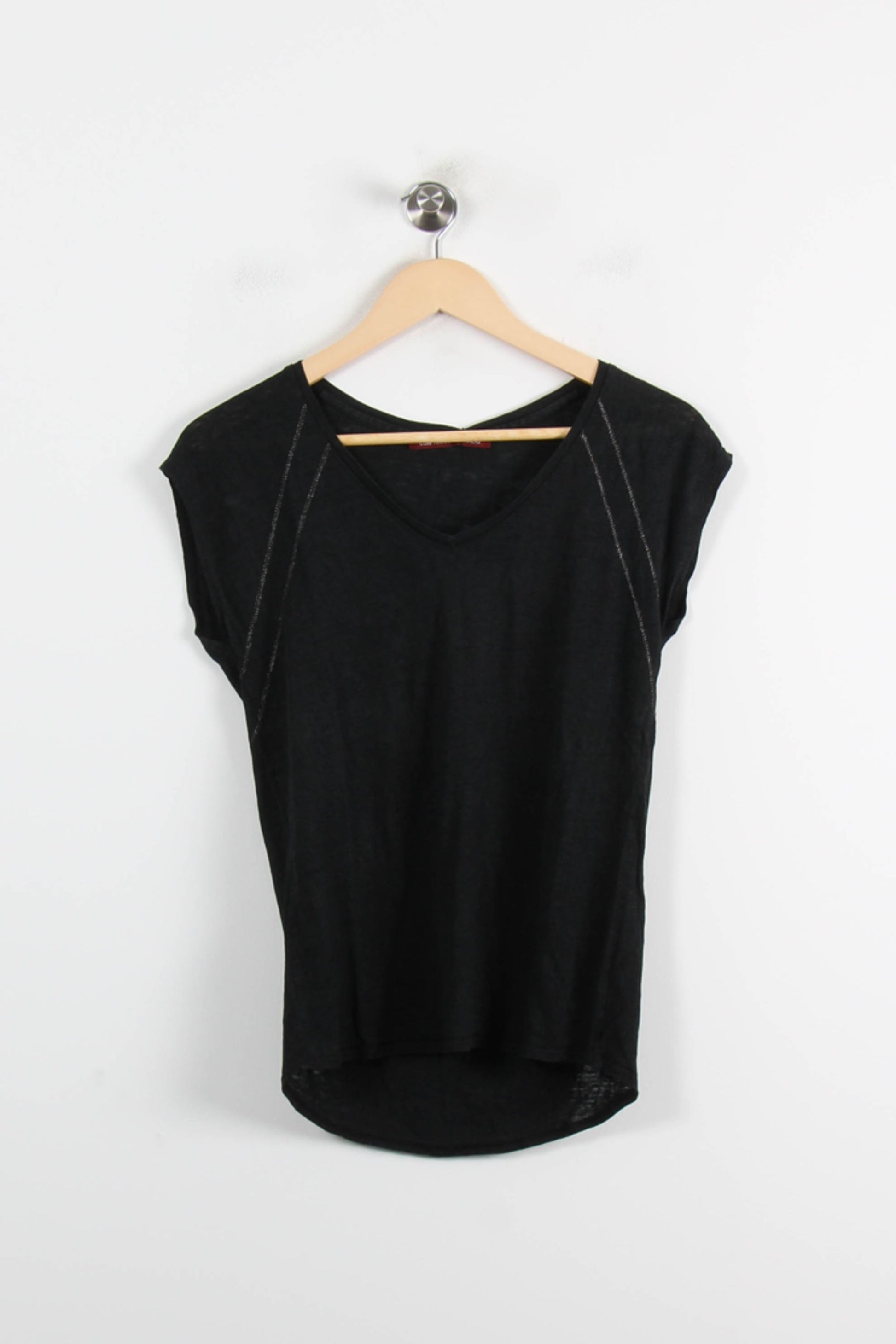 Top noir Comptoir des Cotonniers, taille S/36 : un basique élégant pour le dressing féminin. Réalisé avec une matière et une finition raffinées, avec une présentation haut de gamme des courtes et un subtil jeu de surpique sur les épaules qui apporte une touche moderne et raffinée. Idéal pour une journée de travail au bureau, avec un costume et un jean pour éplucher un contrat.