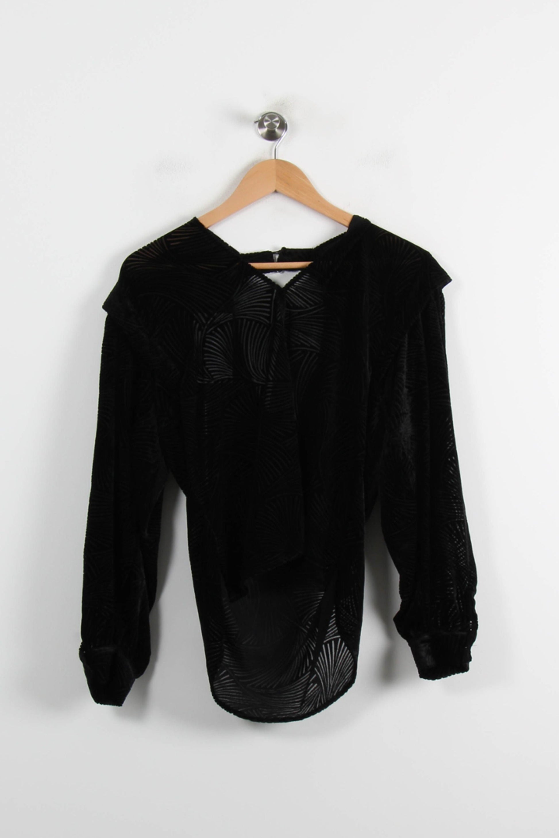 Top et taille IKKS noirs S/36, une pièce élégante de la marque, idéale pour une silhouette raffinée. Elle se distingue par la matière veloutée aux motifs ornementaux discrets, la texture et l'originalité de la coupe fluide et des manches longues. Parfait pour une soirée habillée ou pour réhausser un uniforme de bureau avec une touche de sophistiquée.