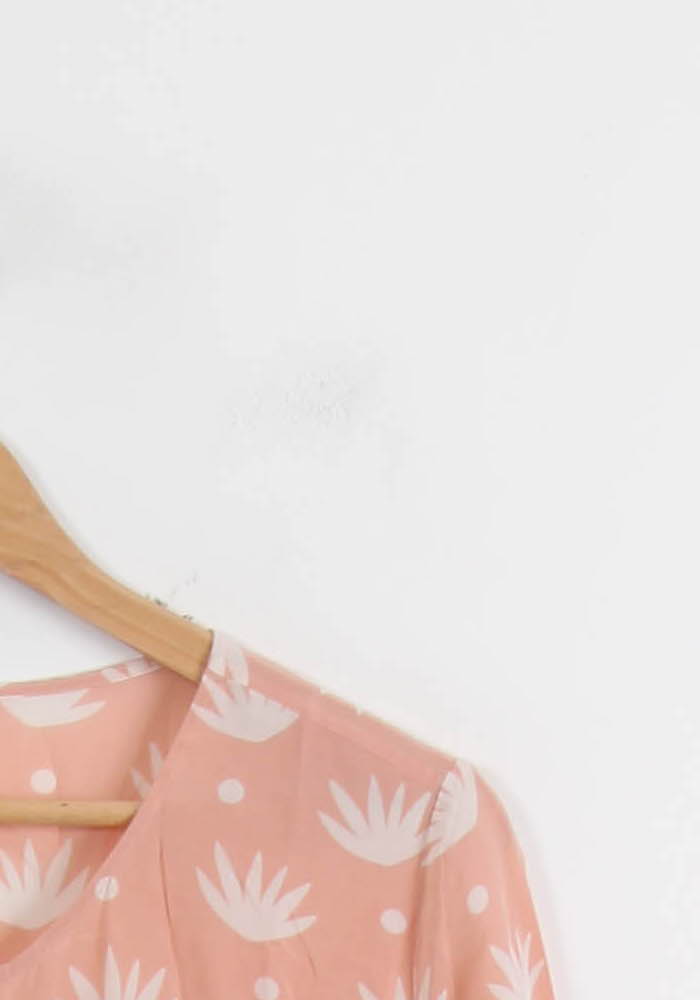Top rose imprimé Des Petits Hauts, taille XL/42, à manches 3/4 et boutonnage apparent sur le devant. Confection réalisée dans une matière fluide, se distinguant nettement de l'imprimé graphite blanc et des boutons qui en découlent, avec une touche d'originalité appropriée et une apparence élégante. Parfaite pour un look imprimé ou une terrasse extérieure décontractée, elle s'adapte à un style chic et décontracté.