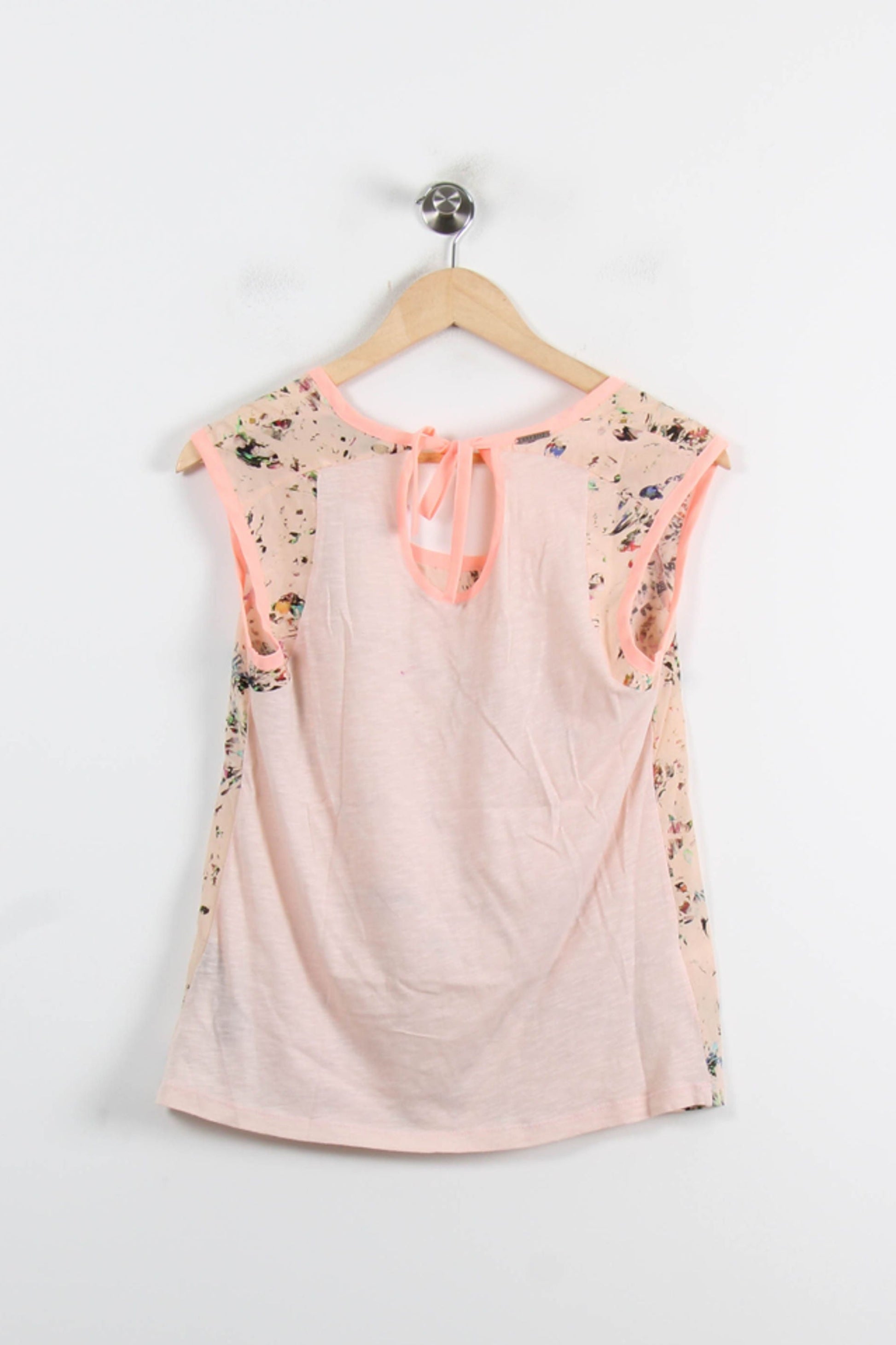 Top sans manches One Step rose, taille M/38, avec un motif abstrait multicolore avec une touche d'art et de modernité. Le processus de fabrication et le soin apporté au caoutchouc sont primordiaux, alliant élégance et originalité, et garantissant une fluidité et un confort exceptionnels. Le top sera parfait pour une sortie décontractée entre amis ou déjeuner en terrasse lors des beaux jours.