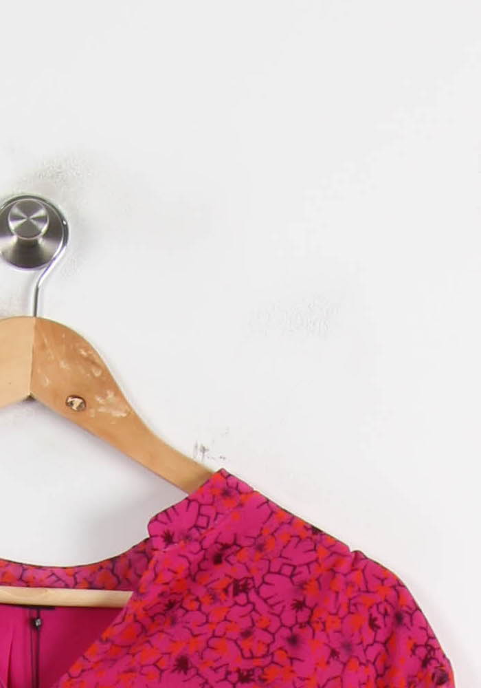 Top fluide imprimé rose One Step, taille S/36. La finition du tissu, la présentation soignée du motif délicat, les manches longues à volants et à la coupe asymétrique, autant de détails qui témoignent du raffinement et de l'originalité de la pièce. Idéal pour une journée de voyage ou un type de contrat, avec un pantalon.