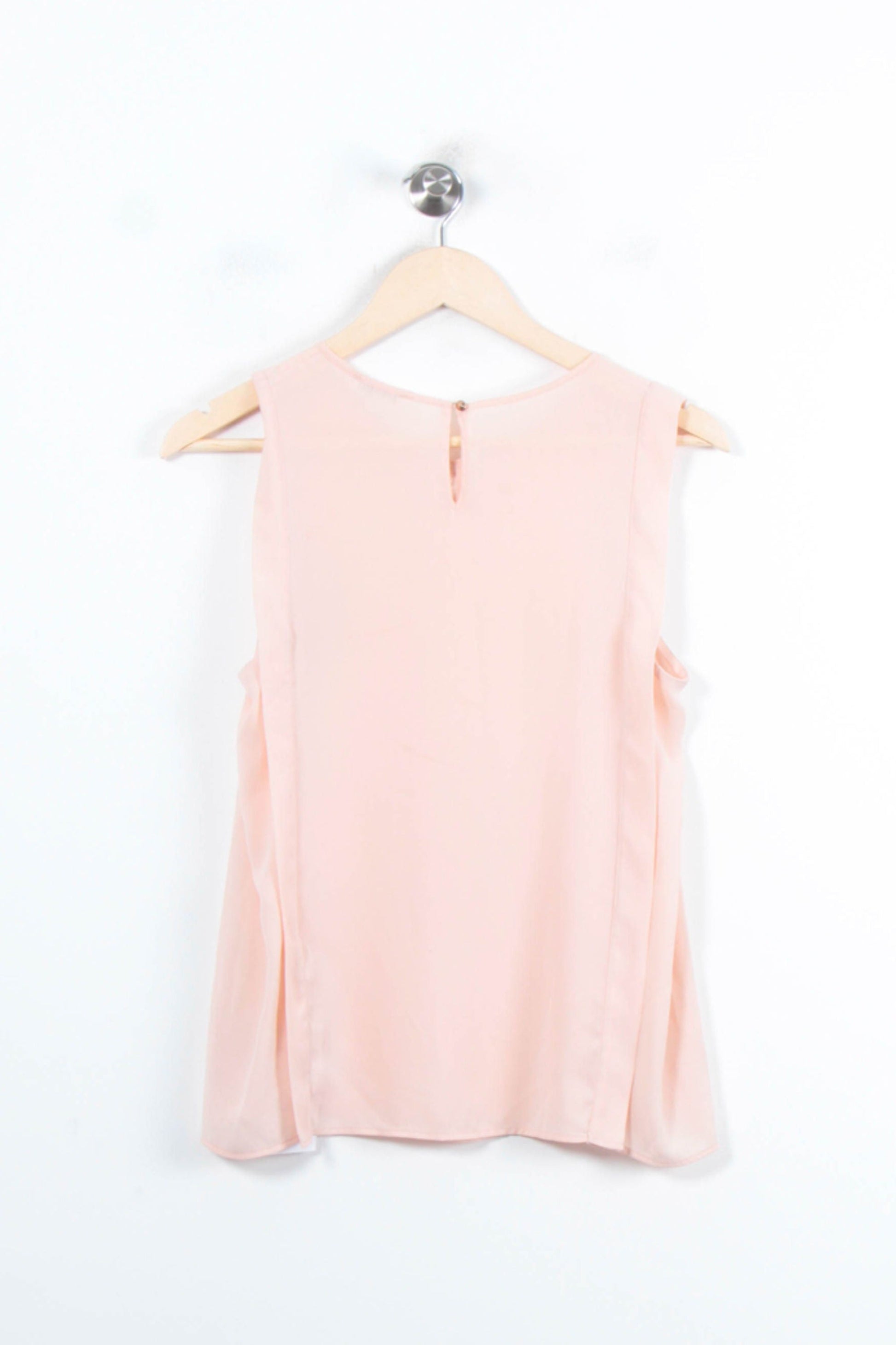 Top sans manches Claudie Pierlot rose pâle, taille S/36, parsemé d'un col roulé rond orné d'un délicat à l'avant. Avec sa fluidité, son soin et son raffinement, ainsi que le détail du design par rapport à la couleur du vêtement, il s'agit d'un style élégant, féminin et contemporain. Idéal pour une tenue de bureau chic ou un déjeuner sur une terrasse.