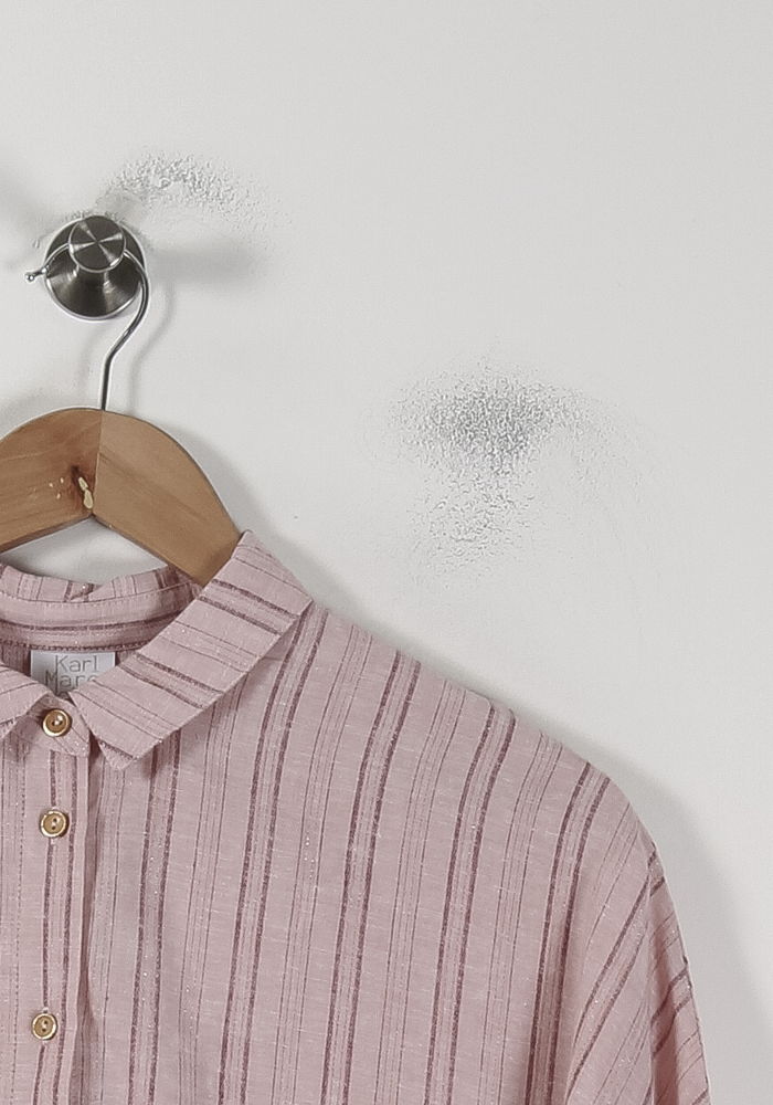Chemise ample à rayures rouges Karl Marc John, taille S/36, élégante et raffinée. Fabriqué à partir de lin (55%), de viscose (44%) et de fibres Lurex (1%), le matériau est composé d'une légèreté, d'un fluide tombé et de délicats volants sur lesquels la police est unique et féminine. Idéal pour des vacances décontractées à la maison ou pour une occasion chic.