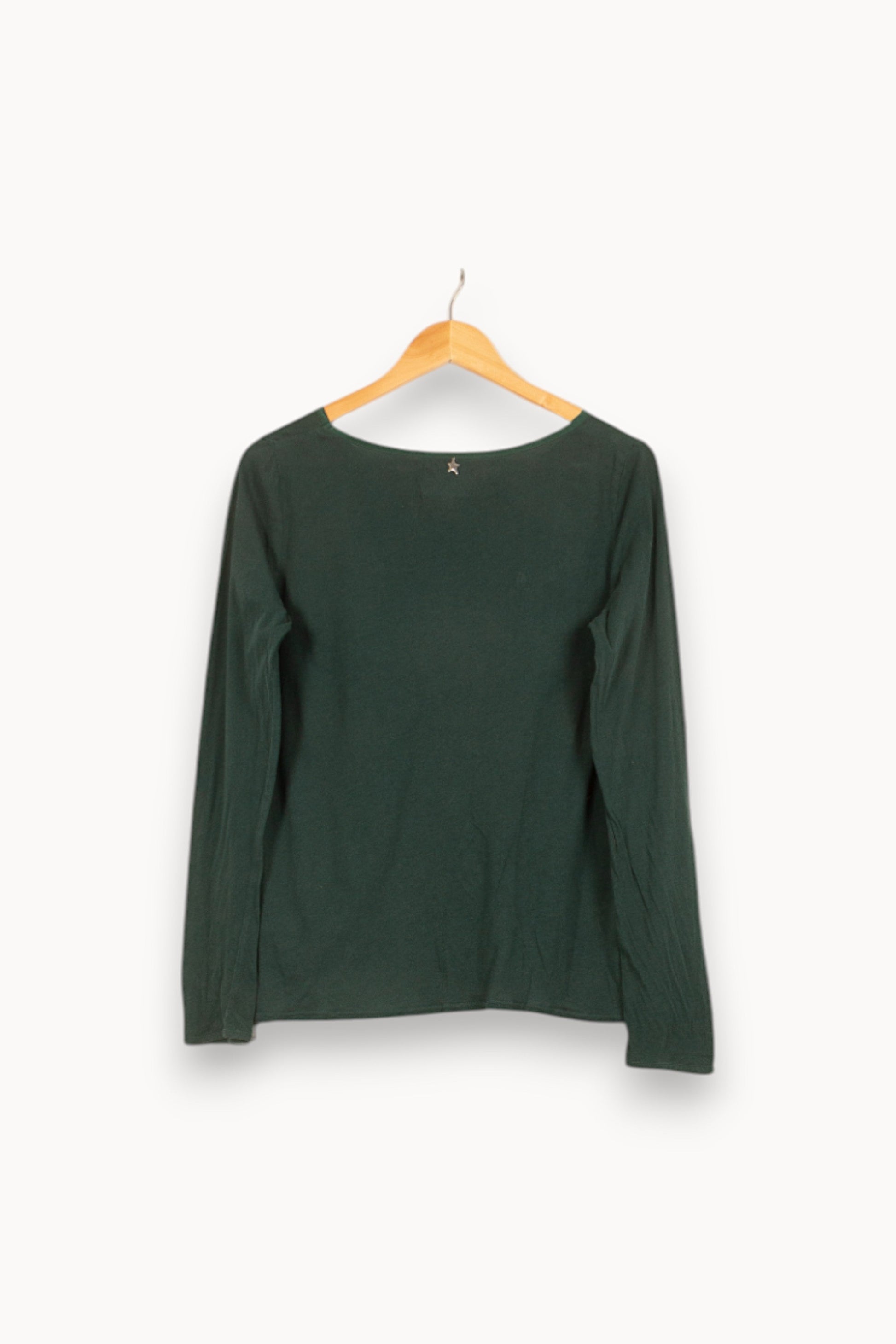 Top vert à manches longues Sud Express, taille M/38 – un modèle élégant et intemporel parfait pour compléter toute garde-robe. La matière fluide offre un tombé léger avec un empiècement délicatement plissé à l’avant, apportant une touche de raffinement discrète à ce vêtement sobre. Idéal à porter lors d’une journée de travail pour une allure chic et confortable ou pour une sortie décontractée.