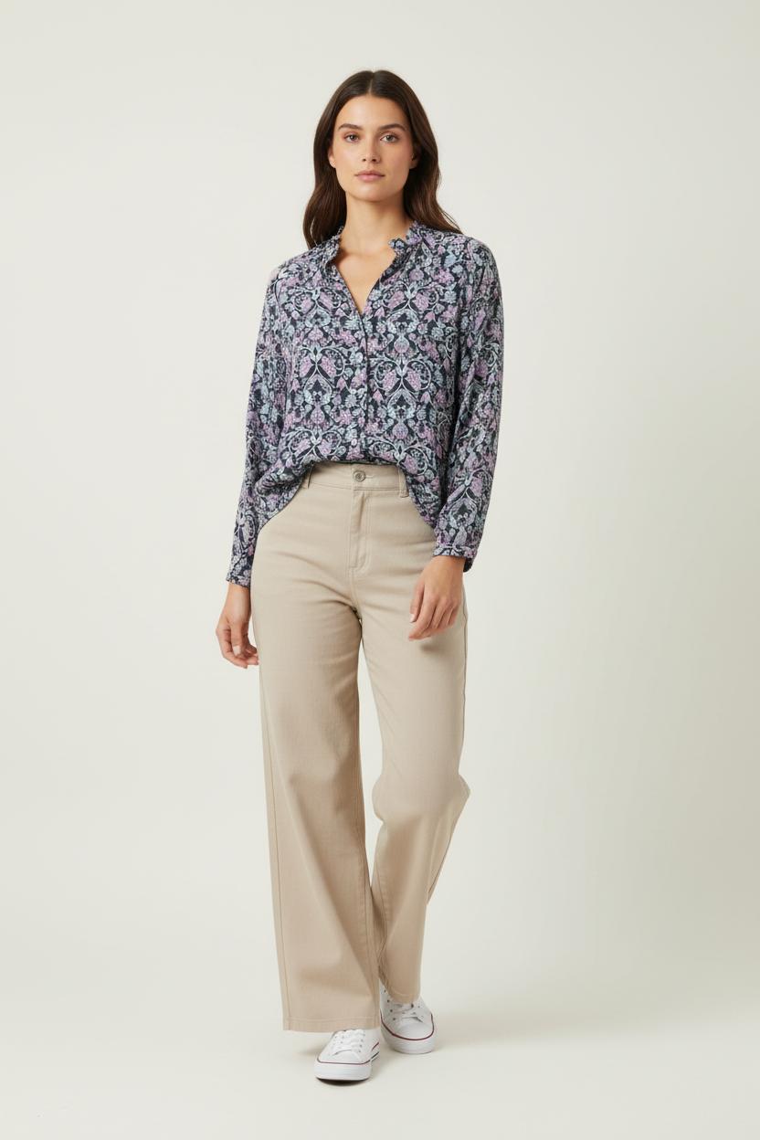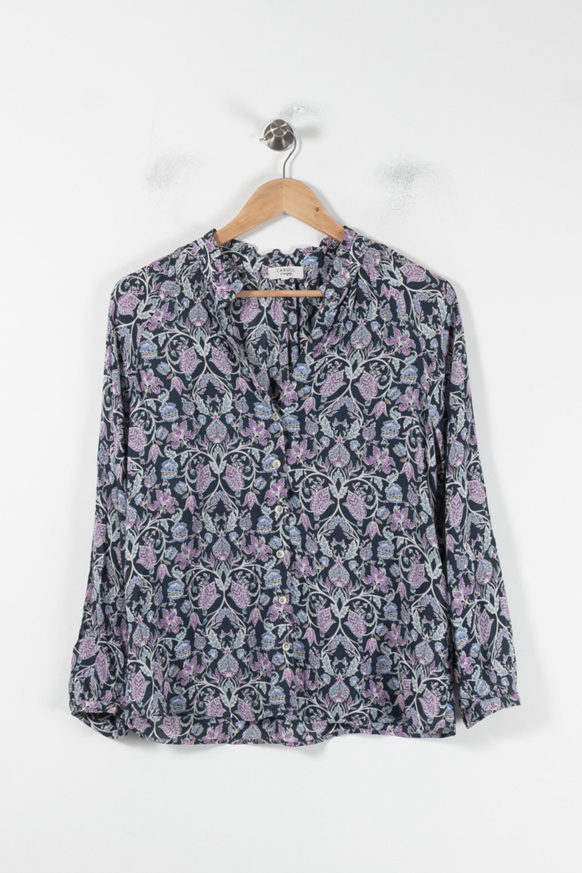 Blouse imprimée violette Caroll taille M/38, la pièce parfaite avec un motif floral distinctif et des détails raffinés. Confectionné en viscose 100%, le tissu est fluide et texturé, les détails du vêtement étant discrets et aériens, pour une allure généreuse d'élégance et de confort absolus. Idéal pour un voyage pendant votre séjour ou un contrat de sortie, tous rehaussés avec uniformes et sophistication.