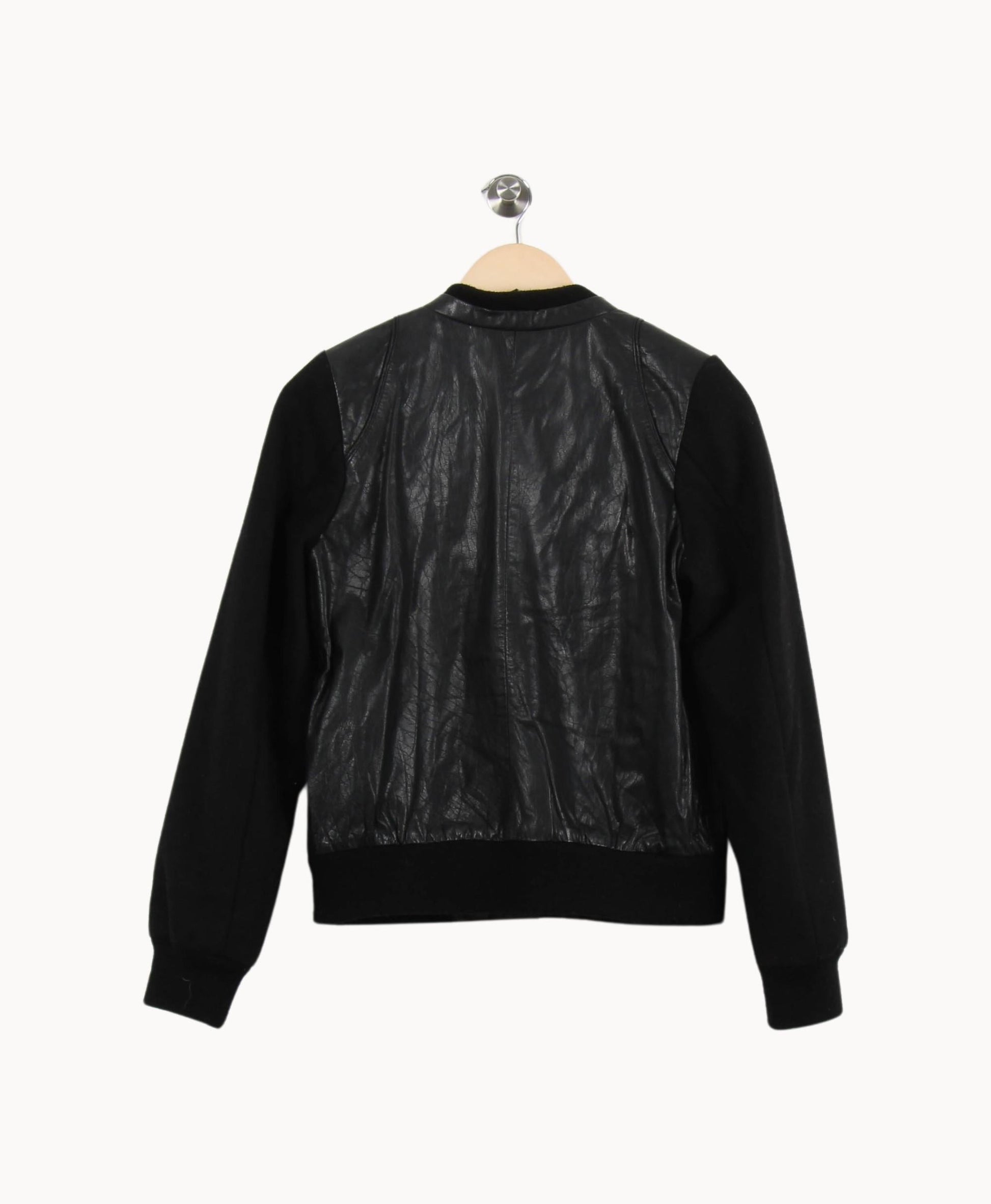 Blouson noir Maje en taille M/38 - Manteau moderne à l'esprit universitaire, revisité avec élégance par la marque. L'association de matériaux variés et d'une carrosserie à la finition noire et blanche crée un contraste à la fois profond, sophistiqué et original ; les finitions impeccables, les finitions latérales et l'impression finale sont uniques par leur charme. Parfait pour affirmer votre style urbain lors de votre séjour en ville ou lors d'un événement chic.