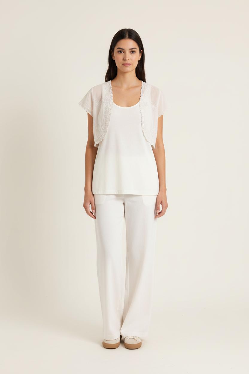 Boléro beige et coton brodé Maje, taille M/38 – le haut délicat de la marque Maje séduit avec une coupe courte et ses raffinements finaux. Confectionnée en 100% coton, elle se distingue par une fine broderie ton sur ton et des finitions soignées, offrant une touche romantique et un design élégant et unique. Idéal pour transformer une robe pour une occasion spéciale ou compléter une tenue chic pour un événement particulier.