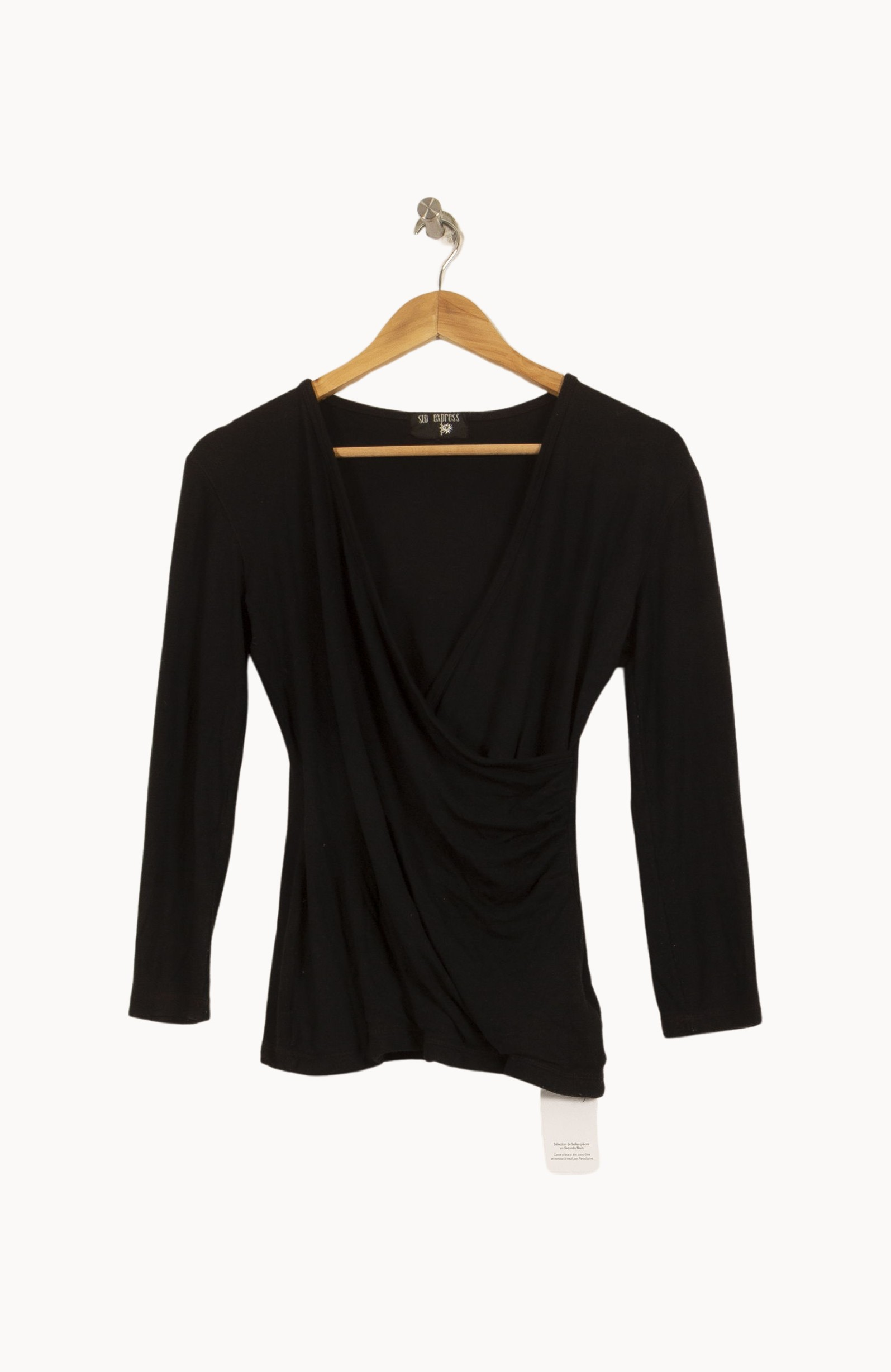 Pull noir Sud Express à manches longues et encolure drapée, taille T.U., parfait pour une silhouette élégante et intemporelle. Confectionné dans une matière fluide et douce, ce pull se distingue par son effet cache-cœur au drapé subtil, ajoutant une touche d’originalité à une pièce incontournable. Idéal pour une journée au bureau ou un dîner raffiné, ce modèle allie confort et raffinement au quotidien.