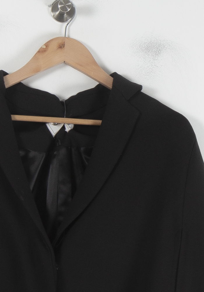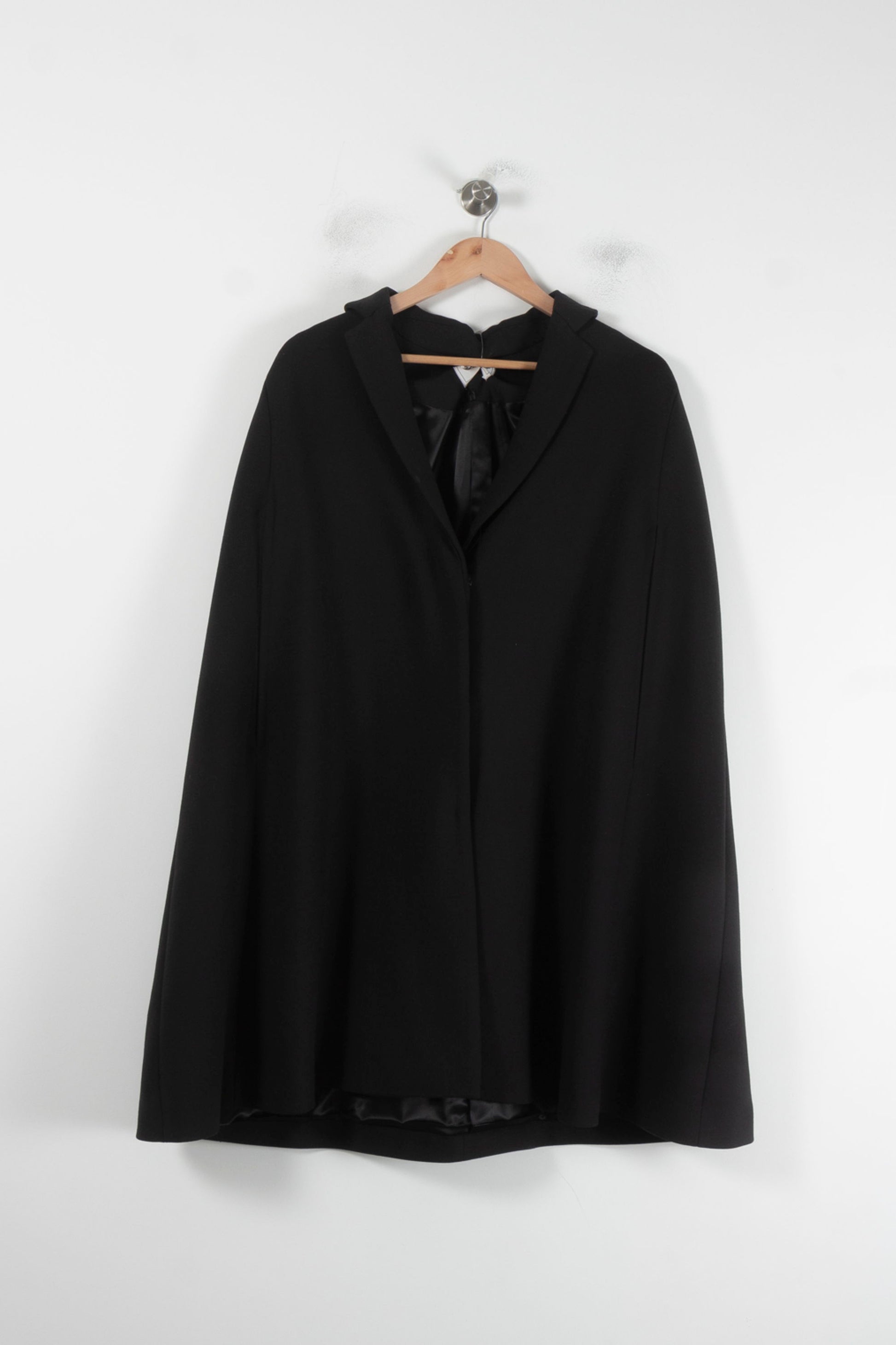 Cape noire élégante Weill XL/42 – une pièce sophistiquée de la marque Weill, idéale pour compléter une garde-robe raffinée. Confectionnée dans un mélange haut de gamme (63% polyester, 34% laine, 3% élasthanne) et doublée d’acétate, cette cape offre une chute fluide ainsi qu’un toucher agréable, tout en assurant une silhouette structurée grâce à son col soigné. Parfaite pour les cérémonies ou les soirées habillées, elle sublime aisément n’importe quelle tenue.