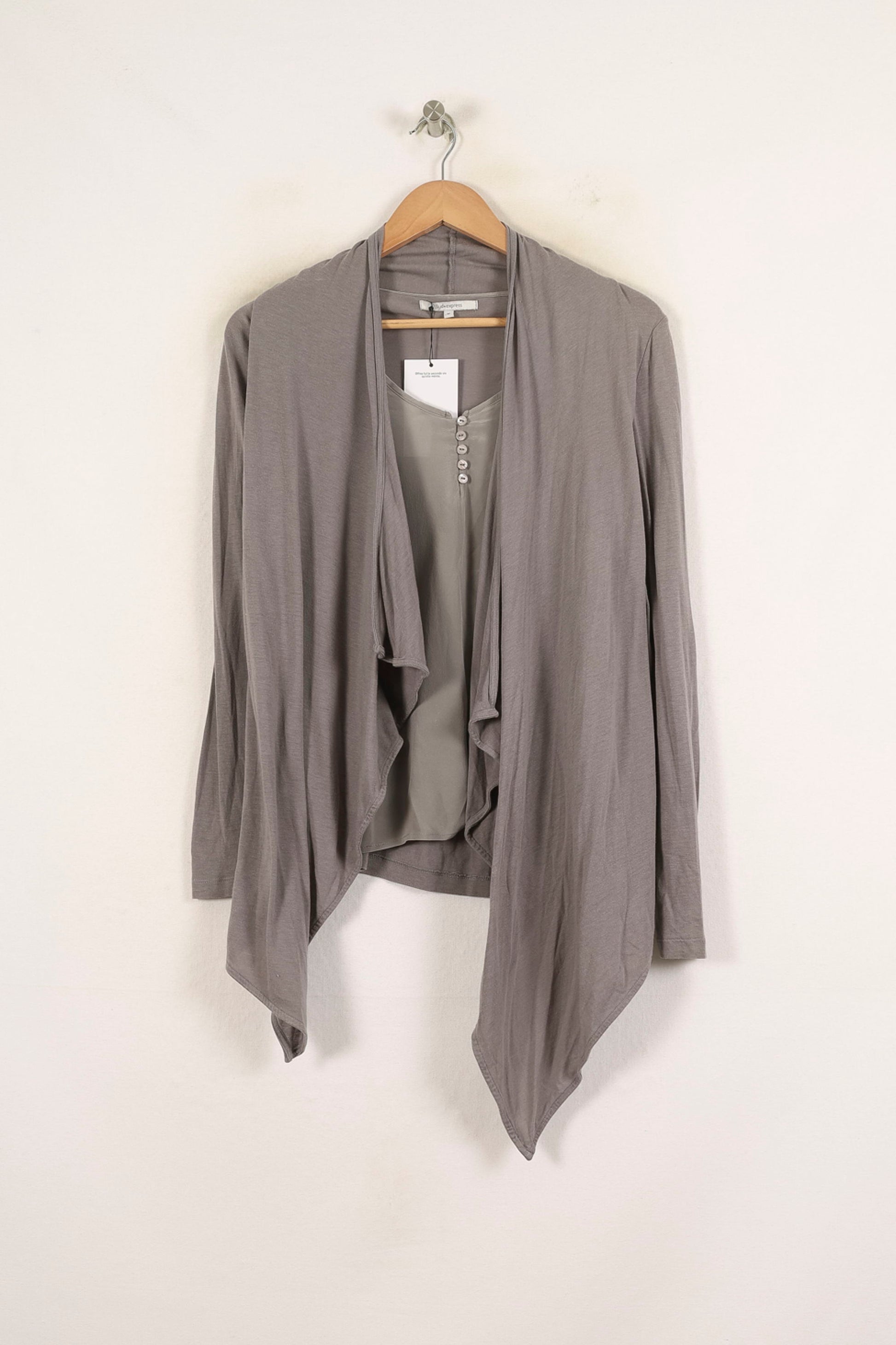 Cardigan drapé Sud express beige, taille M/38, idéal pour compléter une tenue chic et décontractée. Confectionné dans une matière fluide et légère, ce cardigan se distingue par son tombé souple et sa coupe asymétrique aux pans ouverts, apportant une touche de modernité et d’élégance. À porter lors d’une journée au bureau ou pour sublimer une tenue casual lors d’un déjeuner entre amis.