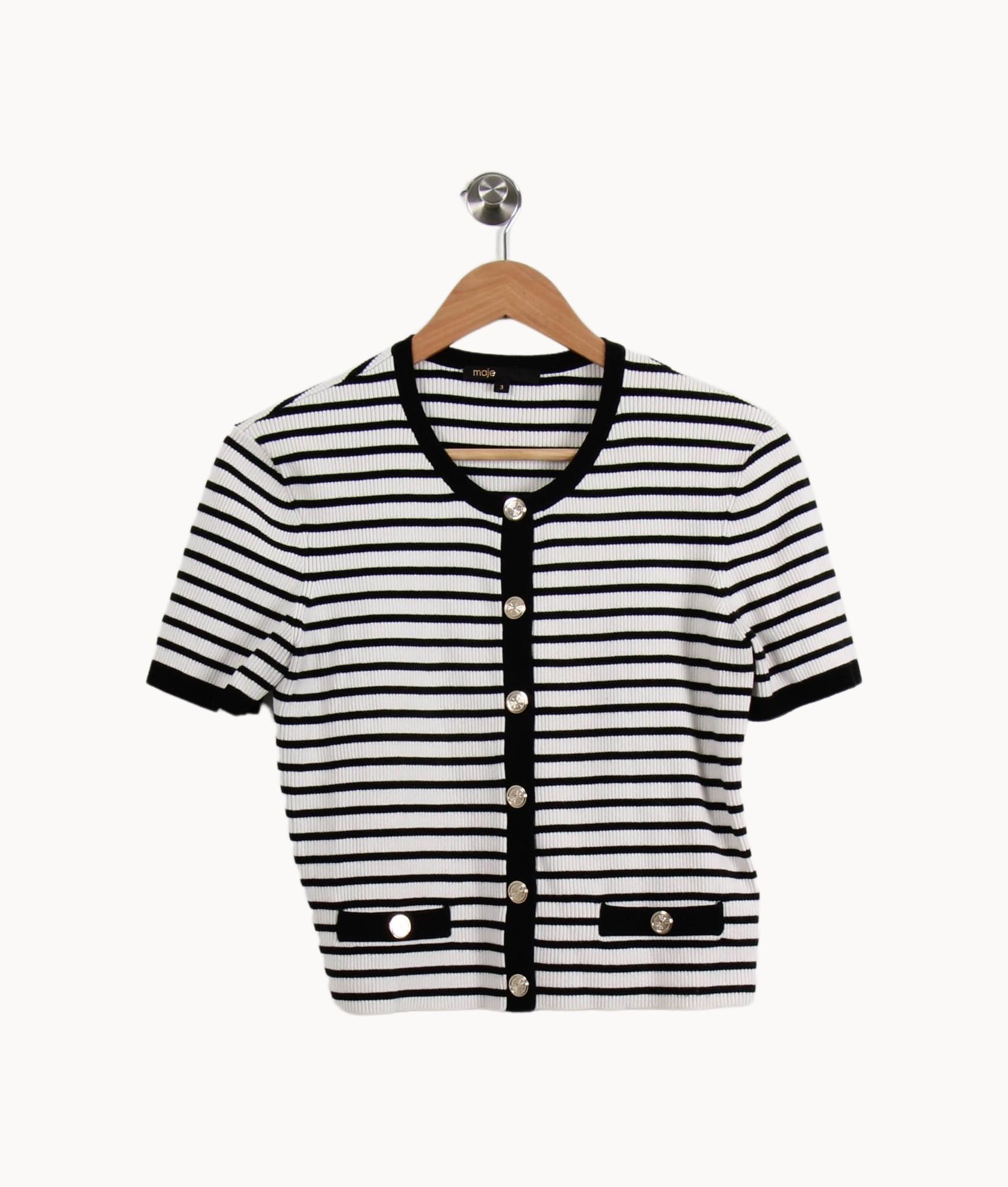 Cardigan Blanc et Noir - Taille L/40 de la marque Maje