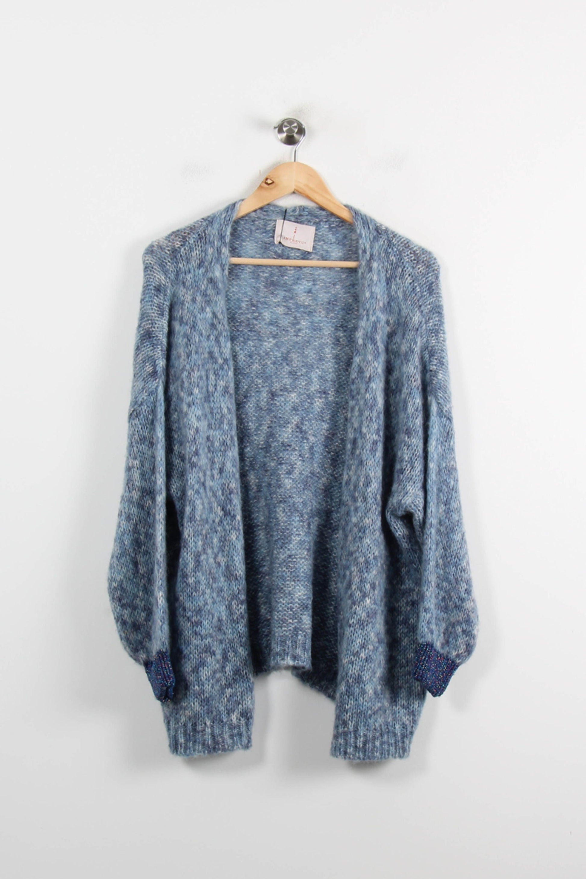 Cardigan bleu en maille – Taille M/38, marque Imprevu. Confection avec un chine à effet maille dans des tons de bleu, le cardigan se présente avec une coupe ample et des côtelées finies aux poignets, ajoutant une touche de modernité au classique. Idéal pour réchauffer vos tenues lors d'une journée décontractée au bureau ou d'un week-end cocooning.