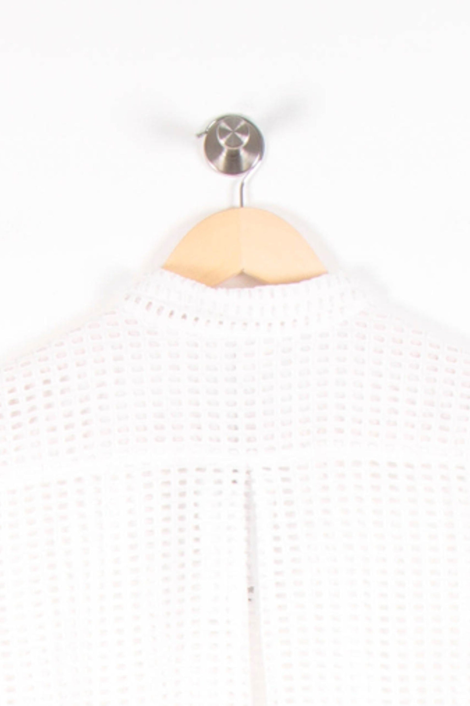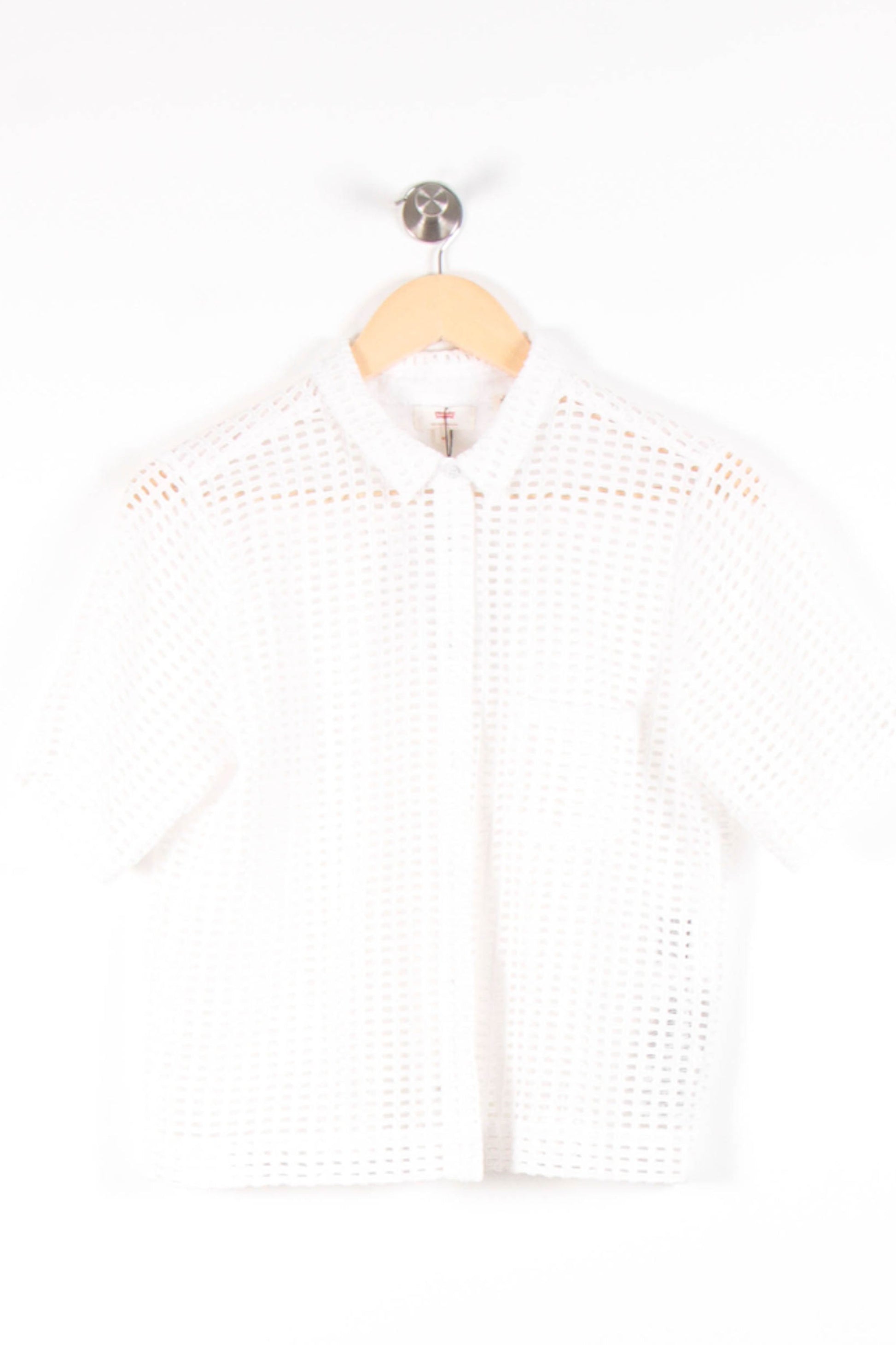 Chemise à manches courtes Levi's blanche, taille M/38, au design ajouré et à la coupe intemporelle. Confectionnée dans une matière légère à effet maille quadrillée, elle se distingue par sa transparence raffinée et son col classique pour une touche moderne et élégante. Idéale pour les journées estivales ou une sortie décontractée en ville.