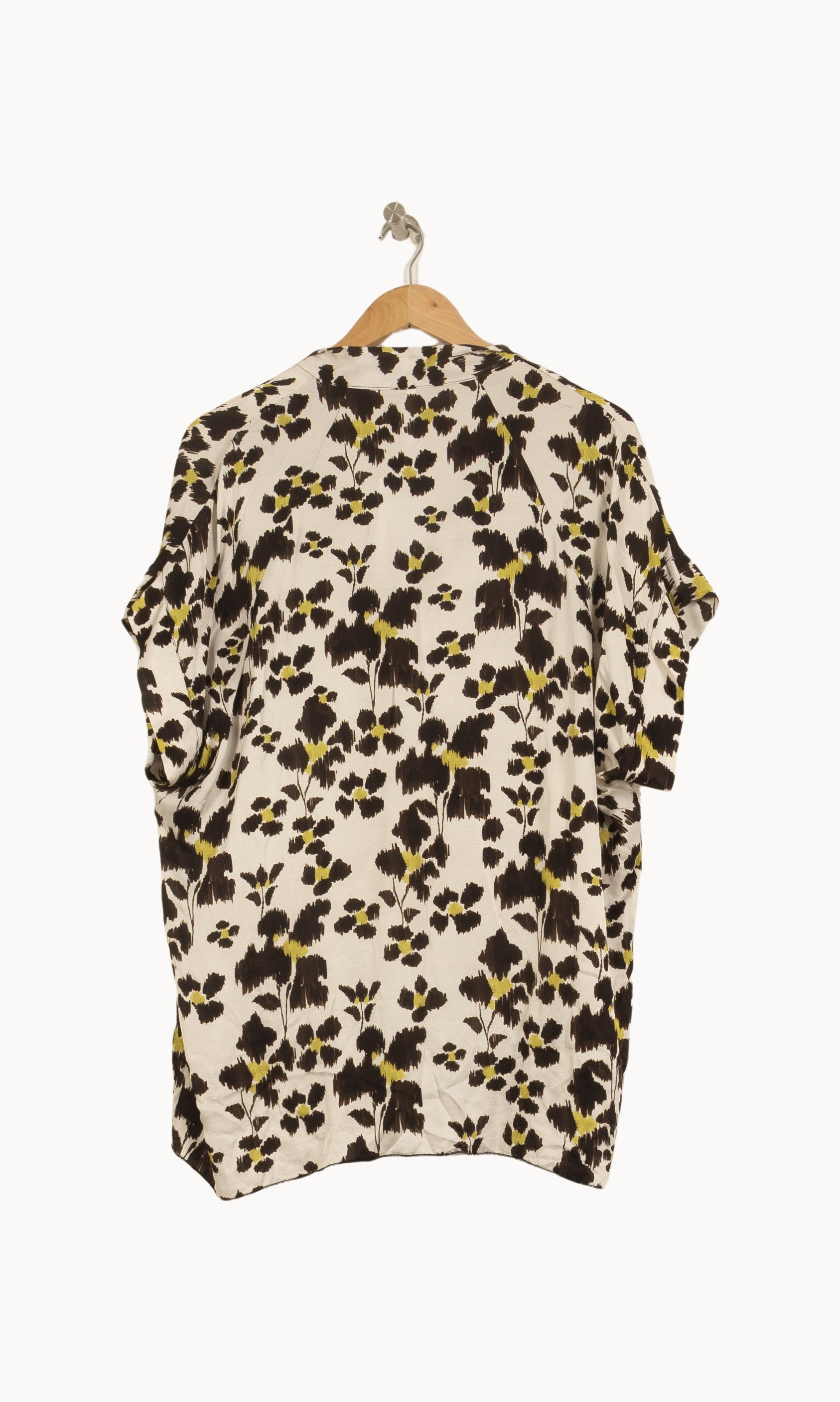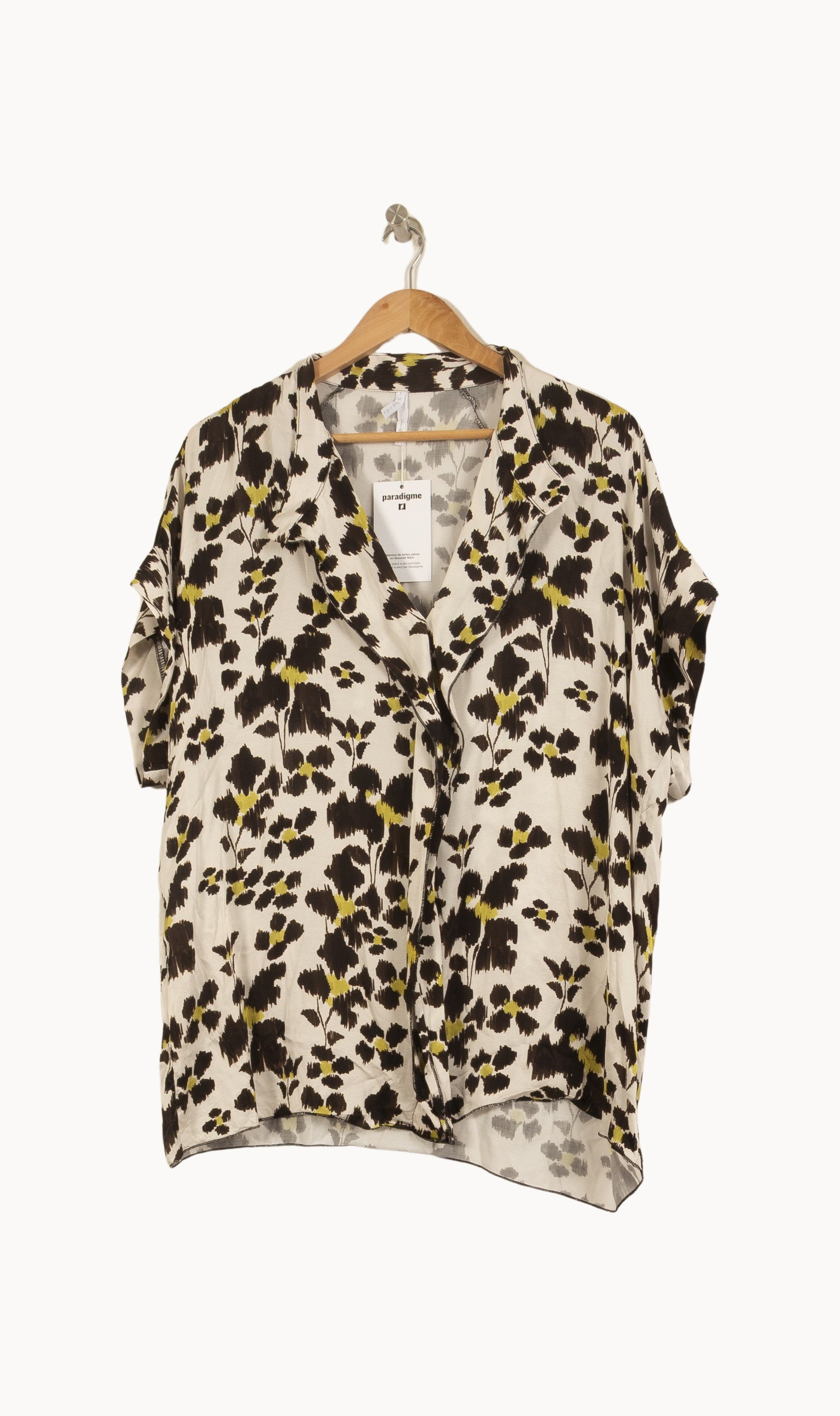 Top multicolore imprimé à manches courtes Imperial taille L/40 – Une pièce tendance de la marque Imperial, à l’allure élégante et décontractée. Confectionné dans une matière fluide, ce top se distingue par son motif abstrait aux touches de noir et de jaune sur fond beige, ainsi que son col ouvert qui apporte une touche d’originalité au vêtement. Parfait pour une tenue chic lors d’un déjeuner estival ou pour dynamiser un look professionnel au quotidien.