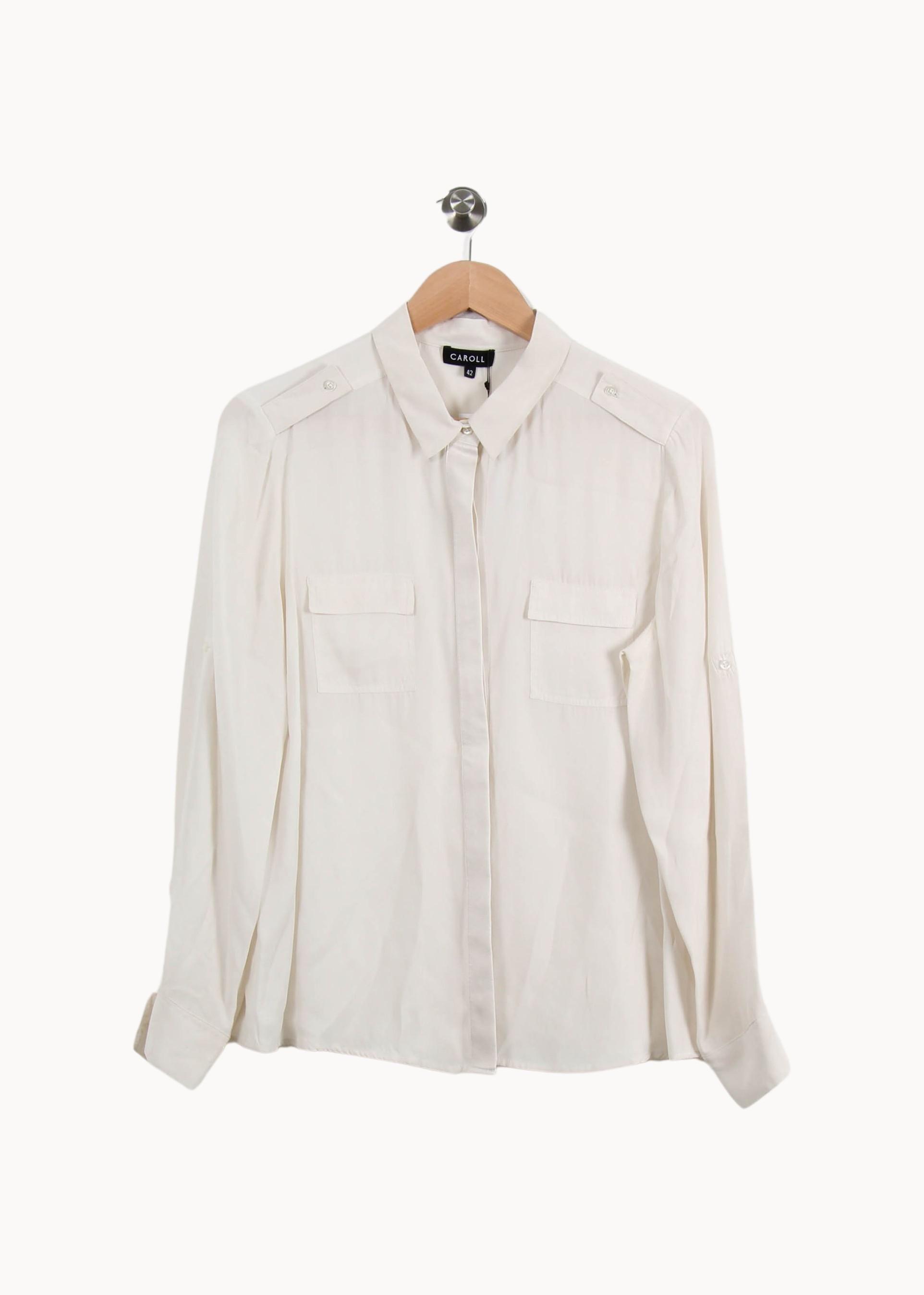 Chemise beige à manches longues Caroll, taille XL/42, au style intemporel et élégant. Cette pièce se distingue par sa matière fluide et légère, ses deux poches à rabat sur la poitrine, ainsi que ses épaulettes boutonnées qui ajoutent une touche de raffinement. Idéale pour une journée de travail ou un rendez-vous professionnel, elle apporte une allure chic et soignée en toute simplicité.