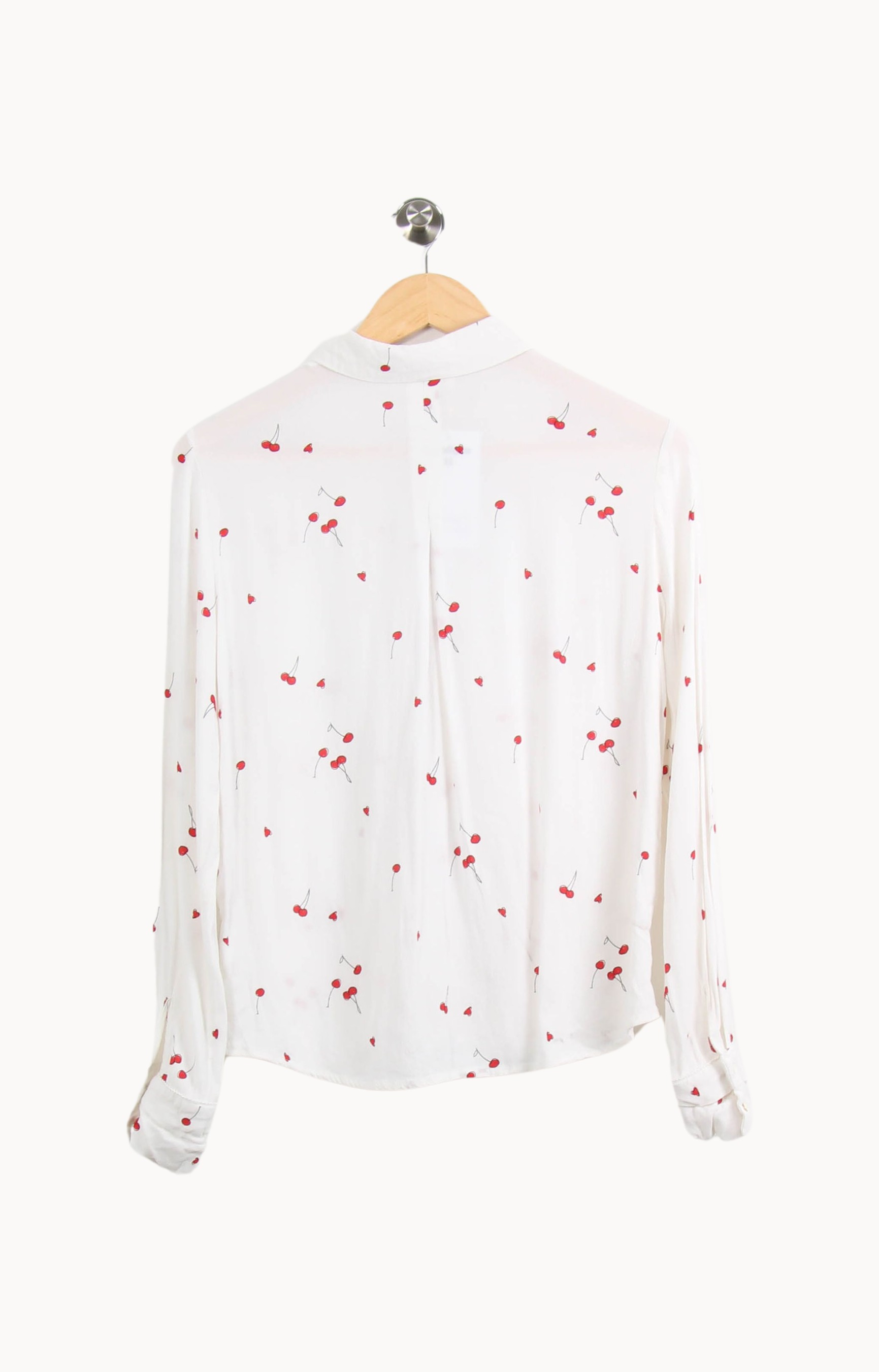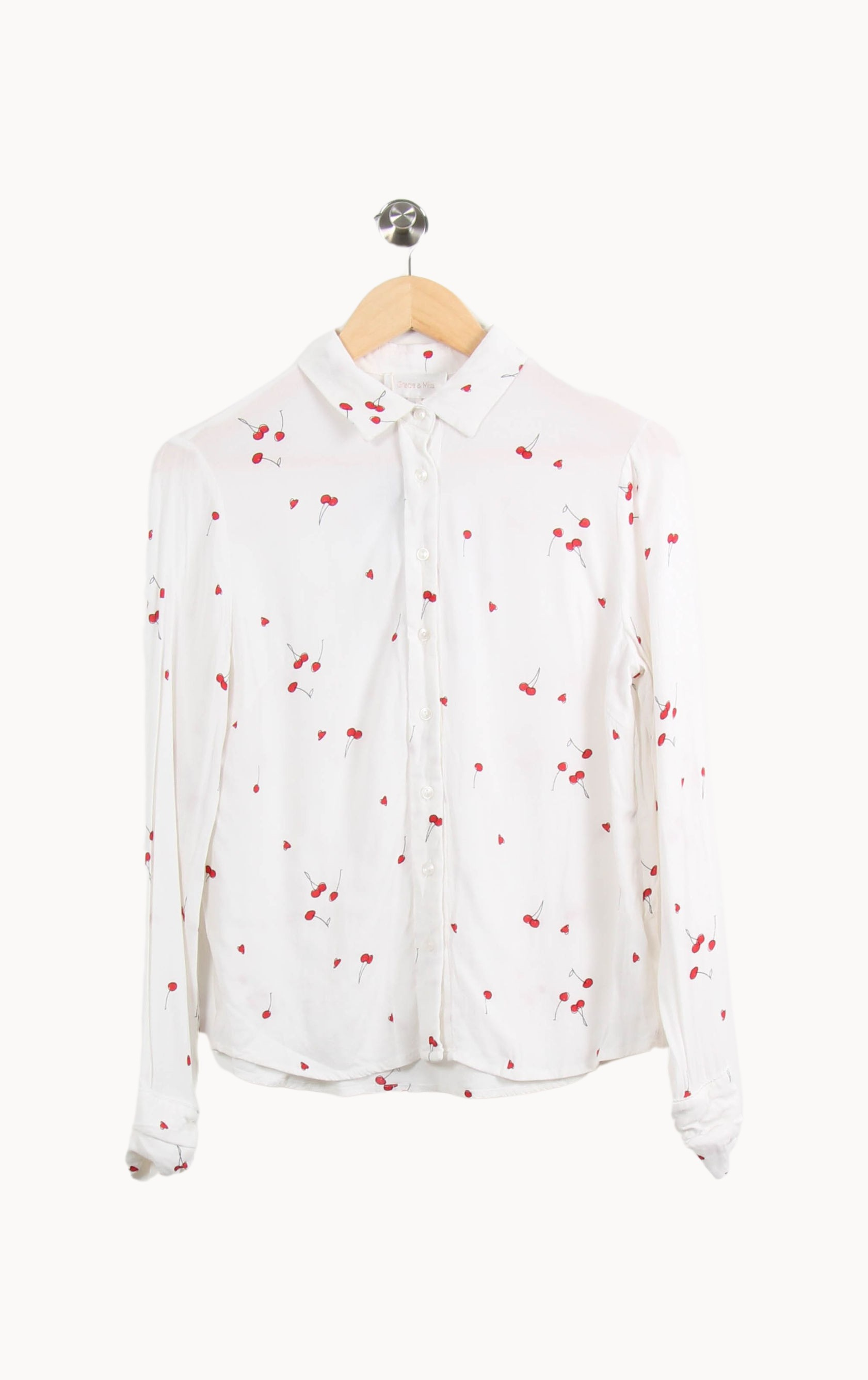 Chemise blanche à motifs cerises Grace & Mila, taille M/38, un top élégant et plein de fraîcheur issu de la marque Grace & Mila. Confectionnée dans une matière fluide et légère, cette chemise se distingue par son imprimé cerises rouge vif, apportant une touche ludique et sophistiquée à l’ensemble, tandis que la coupe classique à col et boutonnage ajoute une note intemporelle. Idéale pour une journée au bureau ou un brunch printanier, elle offre une allure raffinée tout en restant décontractée.